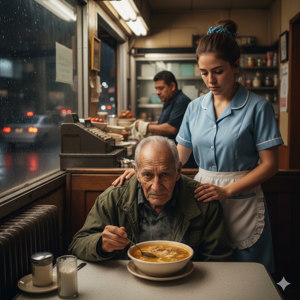 —¿Por qué? —preguntó Arturo, dejando caer la cuchara—. ¿Por qué tratar a un viejo que huele a lluvia y a miseria como si fuera un cliente de etiqueta? Mírame, niña. No tengo nada que ofrecerte. No puedo darte un mejor empleo, no tengo influencias, ni siquiera puedo dejarte una propina decente. ¿Qué ganas con esto?.
