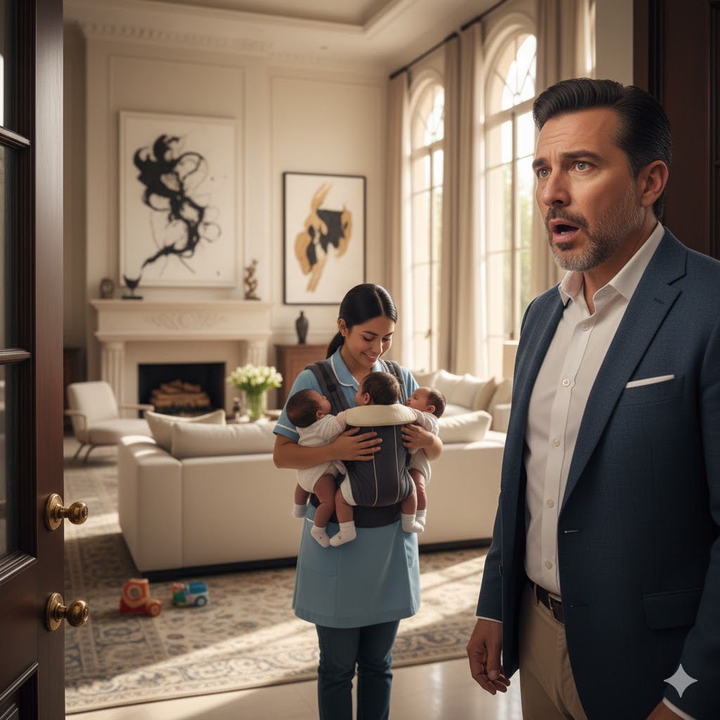 María García se giró para tomar un paño limpio y se quedó petrificada. Al ver a su jefe parado en la puerta, con el traje impecable pero la mirada descompuesta, el pánico inundó sus ojos oscuros. Inmediatamente, sus manos, de manera instintiva, se posaron sobre las espaldas de los bebés, protegiéndolos antes de pensar en sí misma.