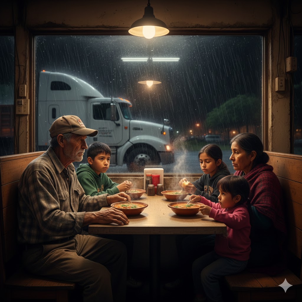 Bajaron del camión. La lluvia finalmente se había detenido, dejando el aire frío, limpio y con ese olor a tierra mojada tan típico de los campos de México. Al entrar a la fonda, los ojos de los otros traileros y de la mesera se clavaron de inmediato en el extraño grupo.