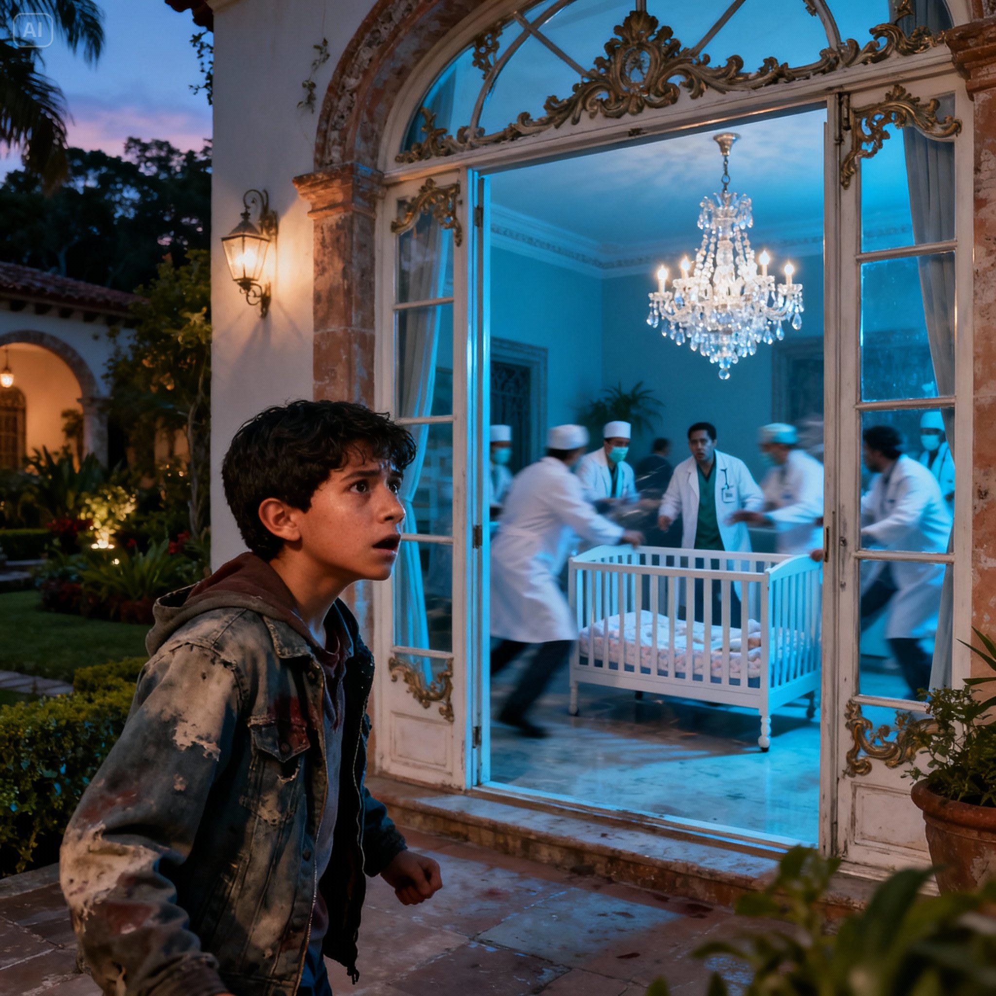 Leo se quedó en la ventana durante horas esa noche, viendo la mansión arder con todas las luces encendidas. Veía las figuras en batas blancas correr de un lado a otro frente al ventanal de la guardería. Veía las sombras del caos bailando sobre el pasto perfecto.