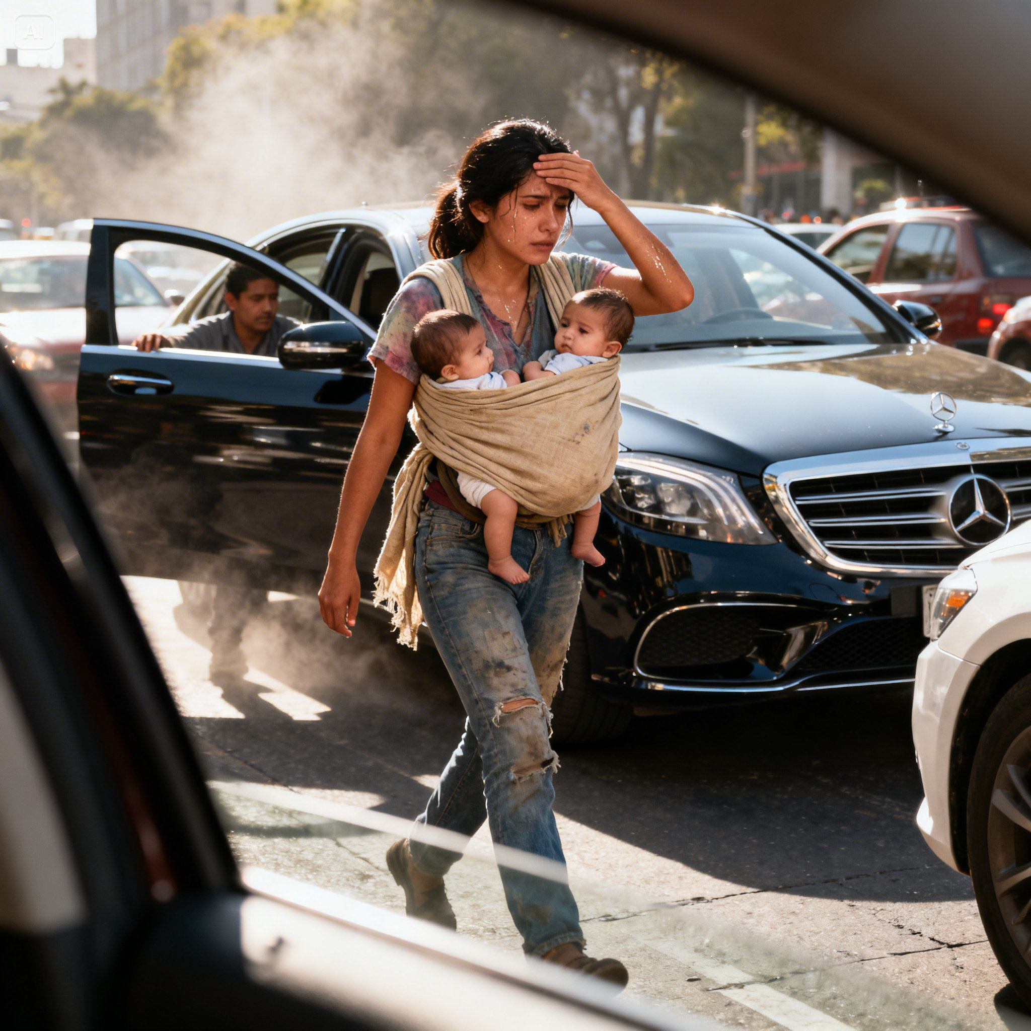 Julián no esperó. La lógica, las normas sociales, el tráfico, la boda, los inversores japoneses… todo desapareció. Solo existía esa mujer y los dos pequeños seres que llevaba a cuestas bajo el sol inclemente.
