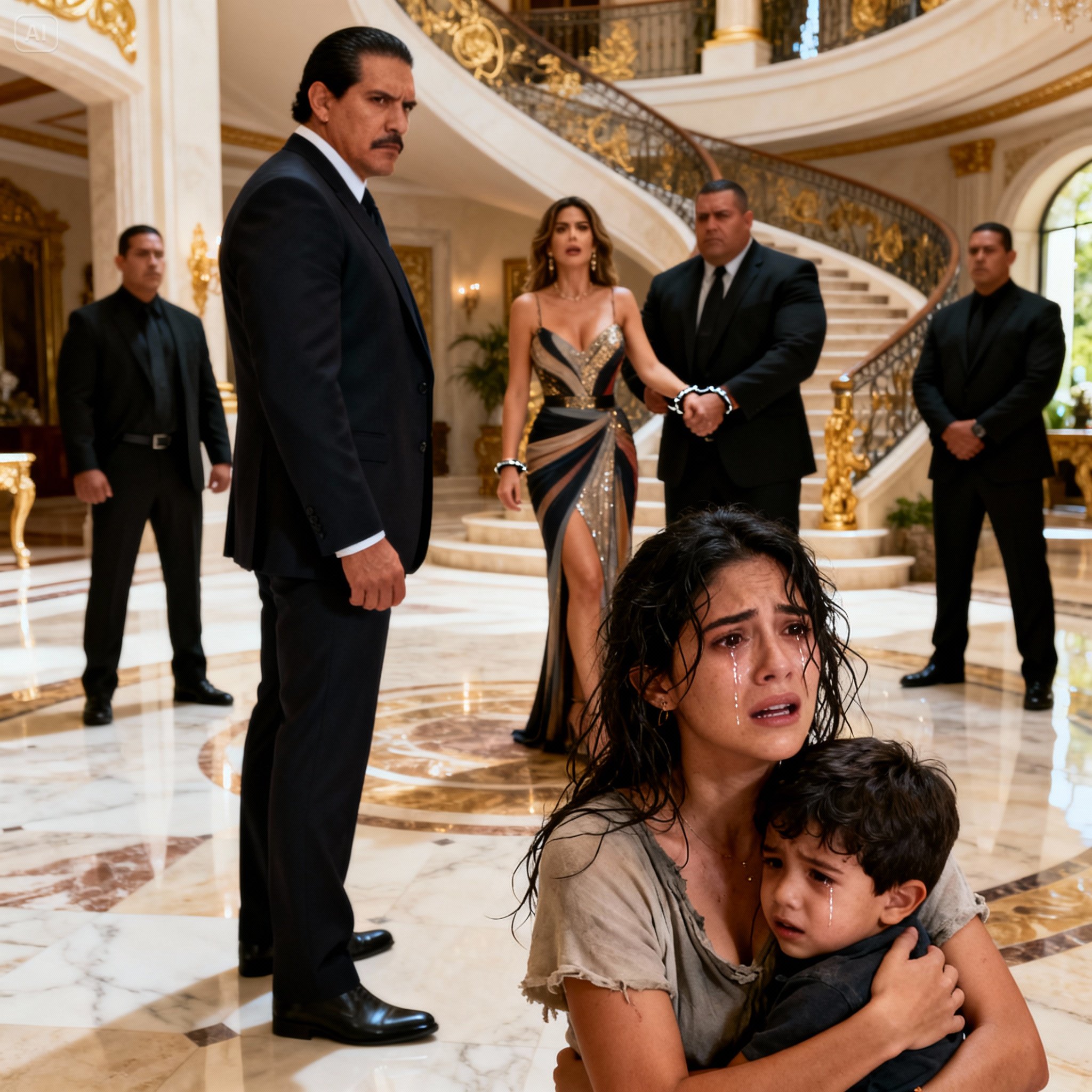 El grito salió de mi garganta como un desgarro, raspando el miedo que llevaba atragantado desde hacía seis meses. No pensé. No medí las consecuencias. Mis pies descalzos resbalaron sobre el mármol helado del recibidor de aquella mansión en San Pedro Garza García, una casa que olía a dinero viejo y a secretos podridos.