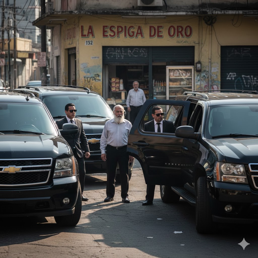 Tres camionetas Suburban negras, con vidrios blindados y neumáticos relucientes, se detuvieron frente al humilde negocio. Los vecinos salieron a sus balcones, pensando que se trataba de algún operativo policial o de la visita de un político importante.