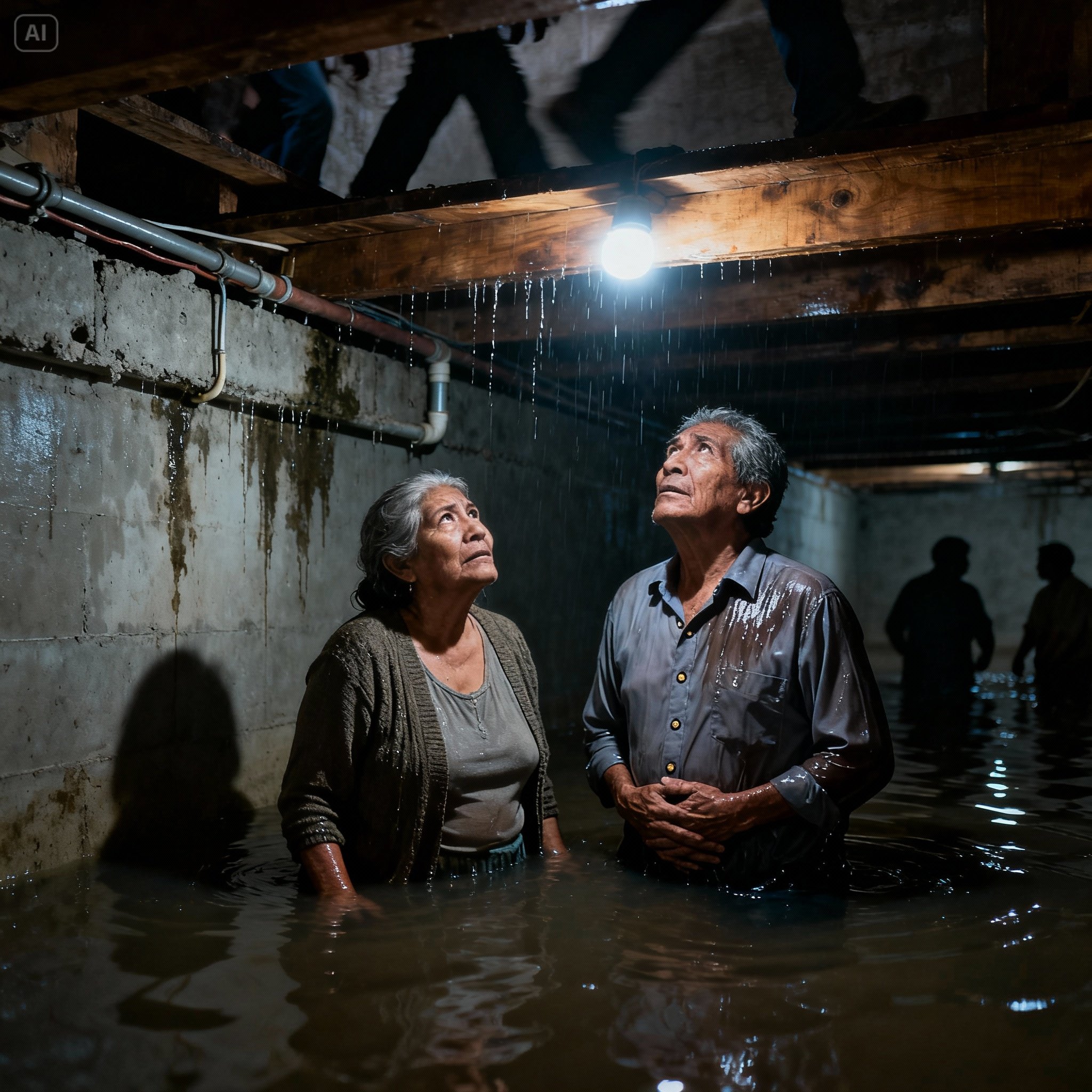 El sótano, que antes era su refugio de carpintería, ahora parecía una caverna hostil. El agua turbia empezaba a mojar las cajas de cartón con recuerdos, las fotos viejas que Elaine no había querido subir a la sala y las herramientas que Roberto tanto amaba.