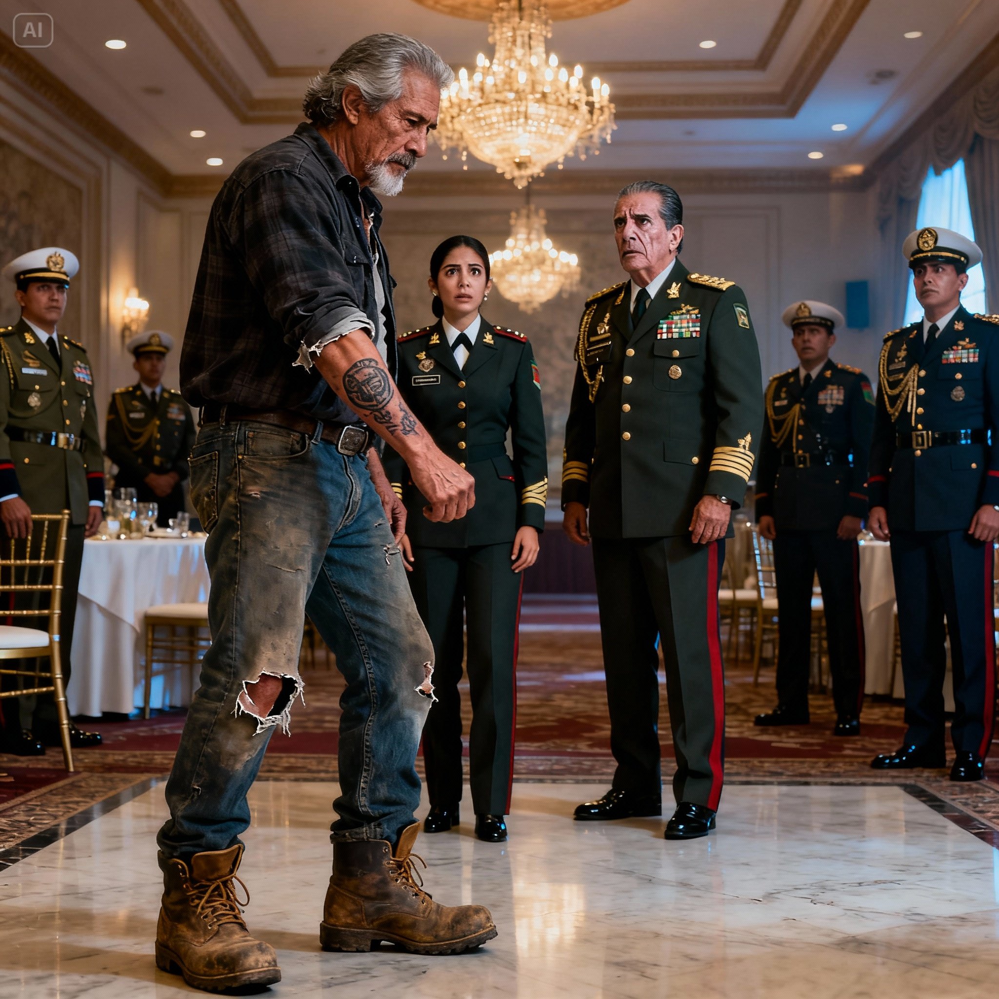 Yo estaba ahí parado en medio de su celebración, con el pecho agitado como un motor diésel viejo en una subida pronunciada. Mi camisa de franela a cuadros estaba desgarrada en el hombro derecho, la tela barata cediendo ante la violencia de los últimos cinco minutos. Sabía exactamente cómo me veía ante sus ojos: un intruso, un trailero sucio que se había colado en el palacio de cristal de la élite militar. Un fantasma de un mundo crudo y real que ellos preferían no recordar mientras bebían su whisky importado.