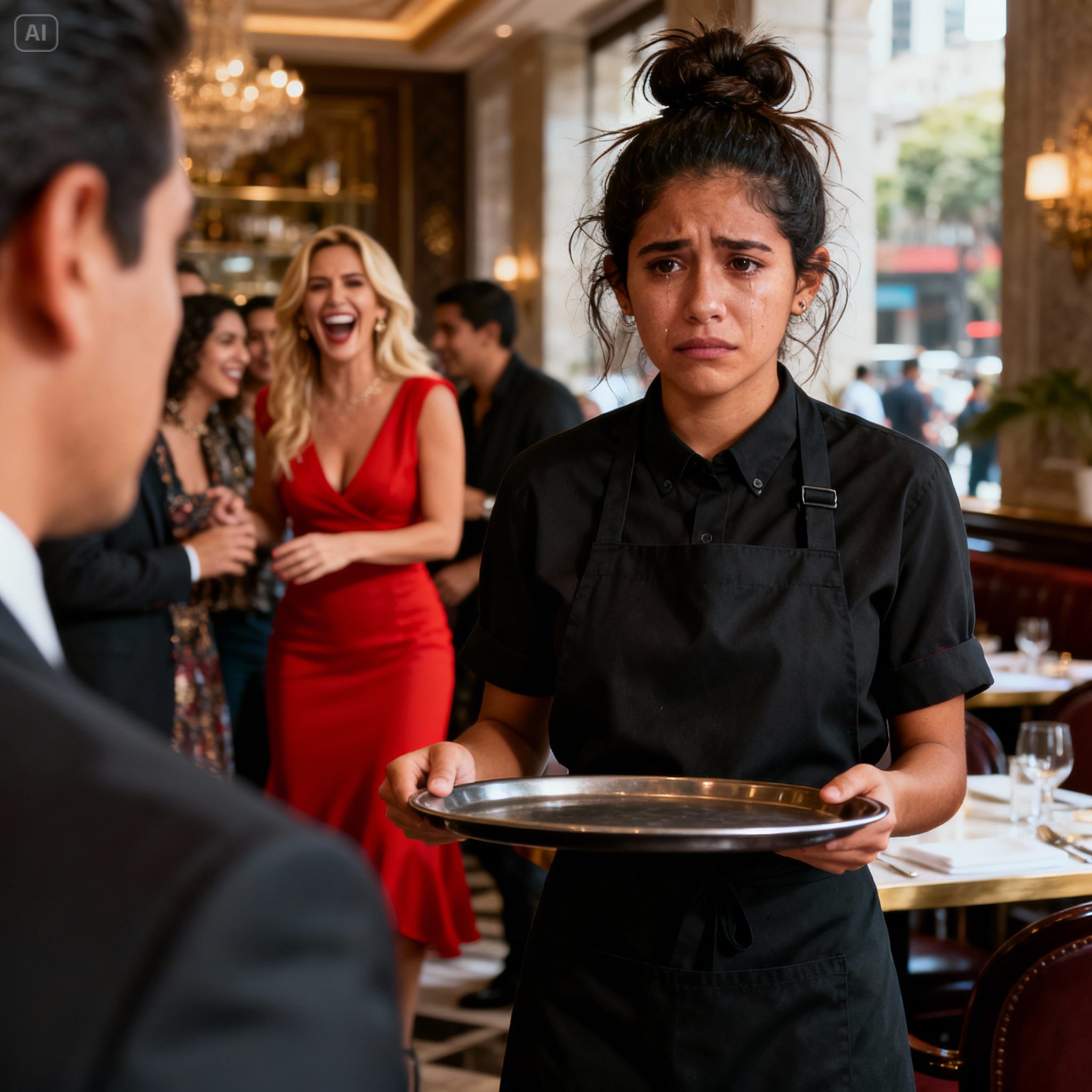 La siguiente hora fue una tortura china. Me convertí en una sombra eficiente, rellenando copas, recogiendo migajas, soportando comentarios sobre mi cabello, mi “olor a metro”, mi “cara de pueblo”. Cada crítica era una piedra más en mi espalda, pero yo aguantaba. Necesitaba el dinero. Necesitaba comer.