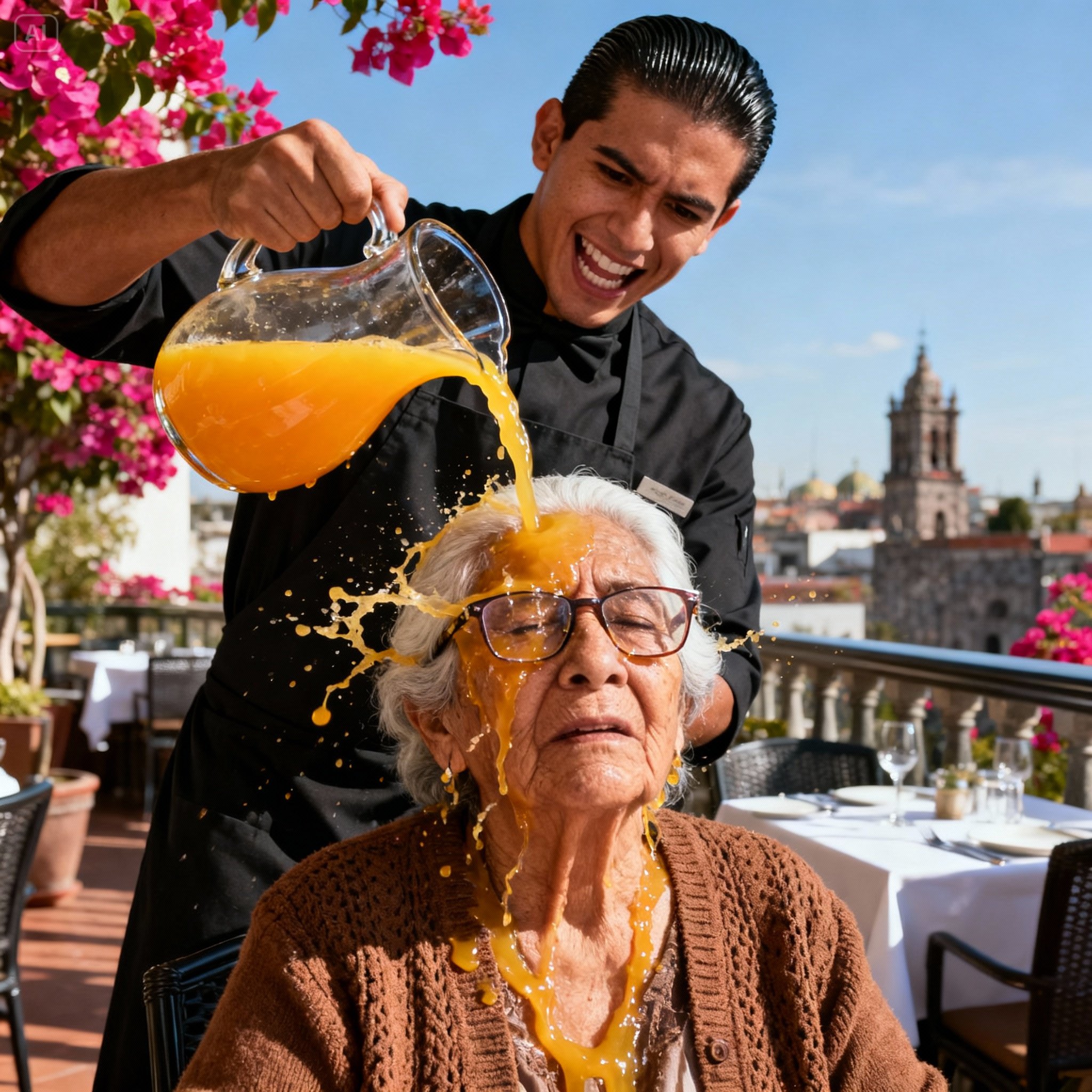 —Ya váyase, señora. Apesta a jugo —dijo el mesero, haciendo un gesto de asco con la mano frente a su nariz.