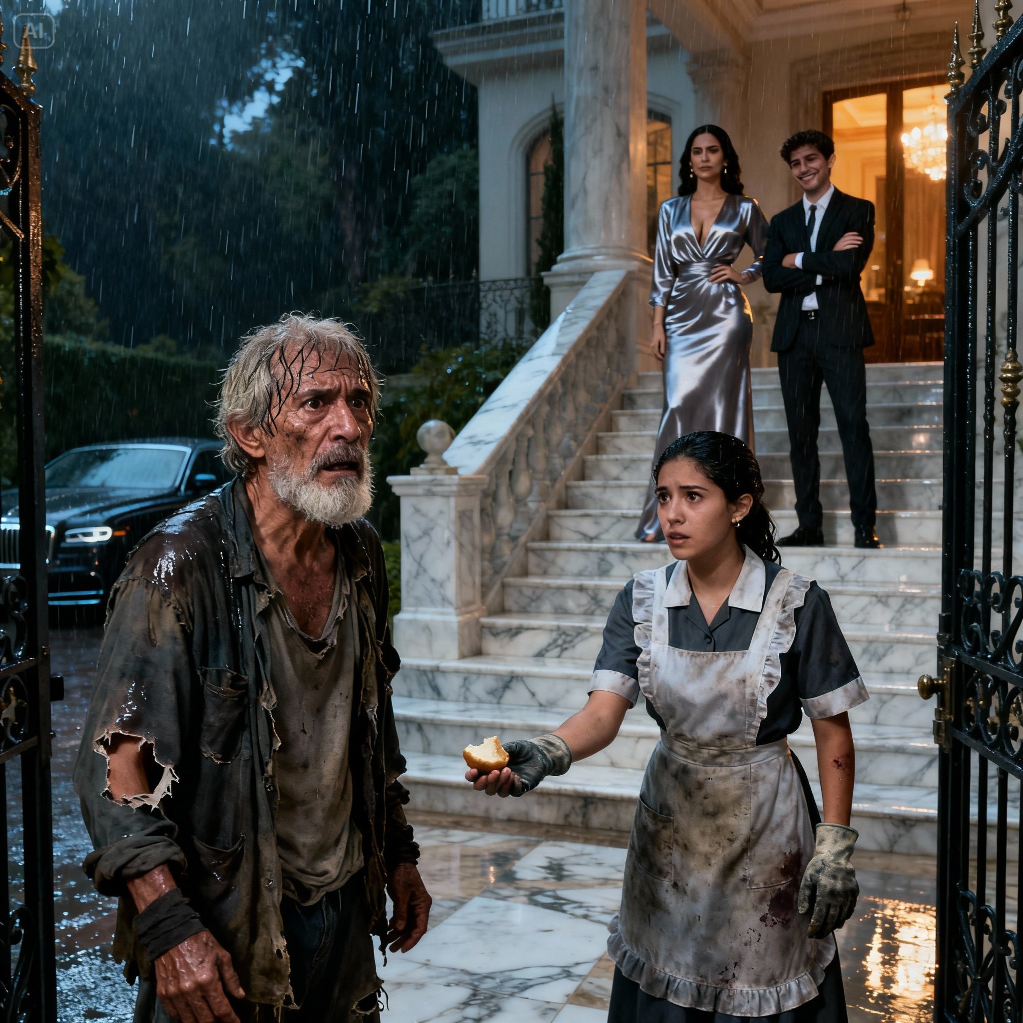 Me quedé congelado. El pan se sentía pesado en mi mano, como una piedra. Mi hija, la heredera de un imperio, me estaba alimentando con sobras y temblaba como un perro golpeado en la puerta de su propia casa.