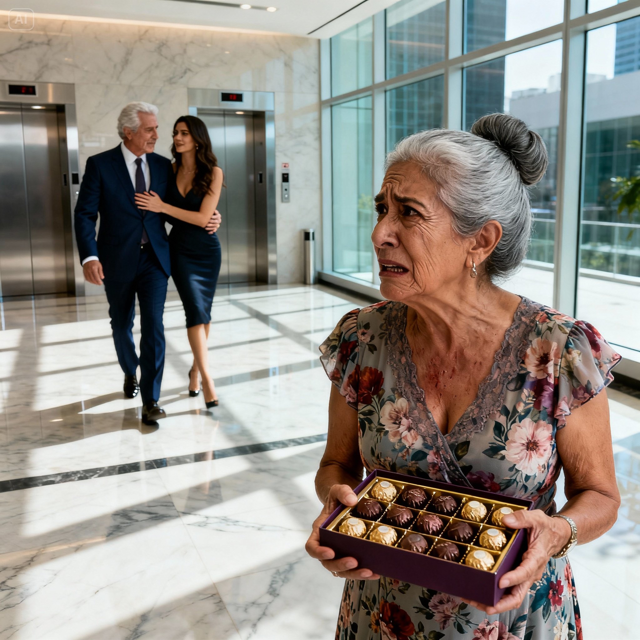 La caja de bombones se me resbaló de las manos temblorosas, pero logré sujetarla contra mi pecho en el último segundo, arrugando el papel plateado.