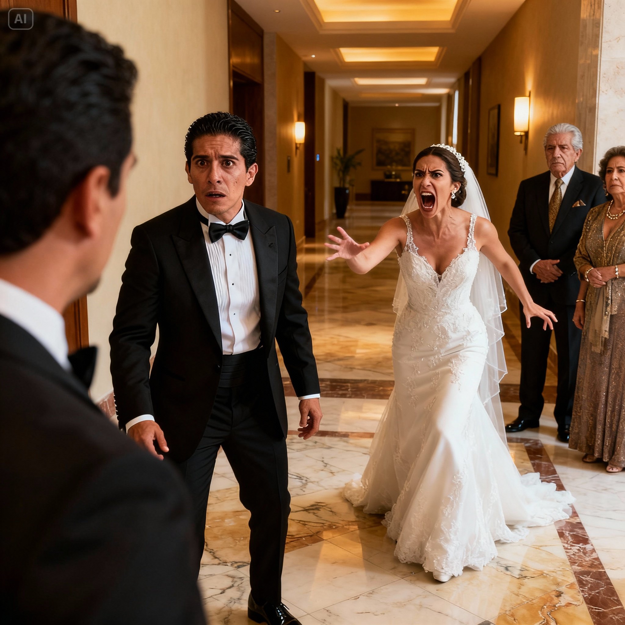 —¡No tienes idea de lo que estás diciendo! —Eduardo la interrumpió, girándose hacia ella con el rostro descompuesto por el pánico. Gotas de sudor comenzaban a brillar en su frente bajo las luces cálidas del hotel—. Cierra la boca, por el amor de Dios.