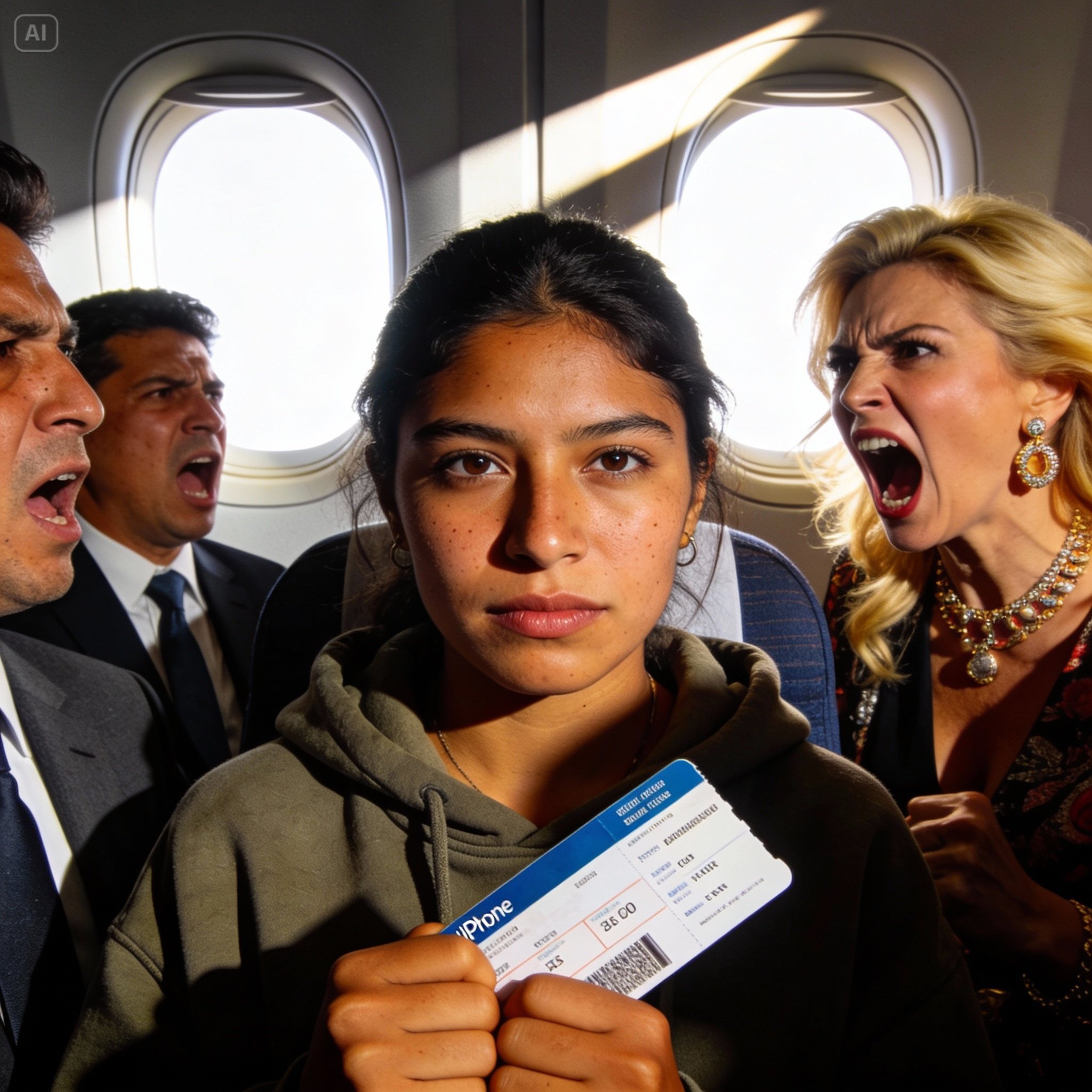 Los motores del avión ya zumbaban suavemente, listos para el trayecto Ciudad de México – Nueva York. Pero dentro de la cabina, el tiempo se congeló. Fernanda, alta, rubia, vestida con un blazer blanco que costaba más que el sueldo anual de un obrero, se alzaba sobre el asiento 4A como una torre de indignación.