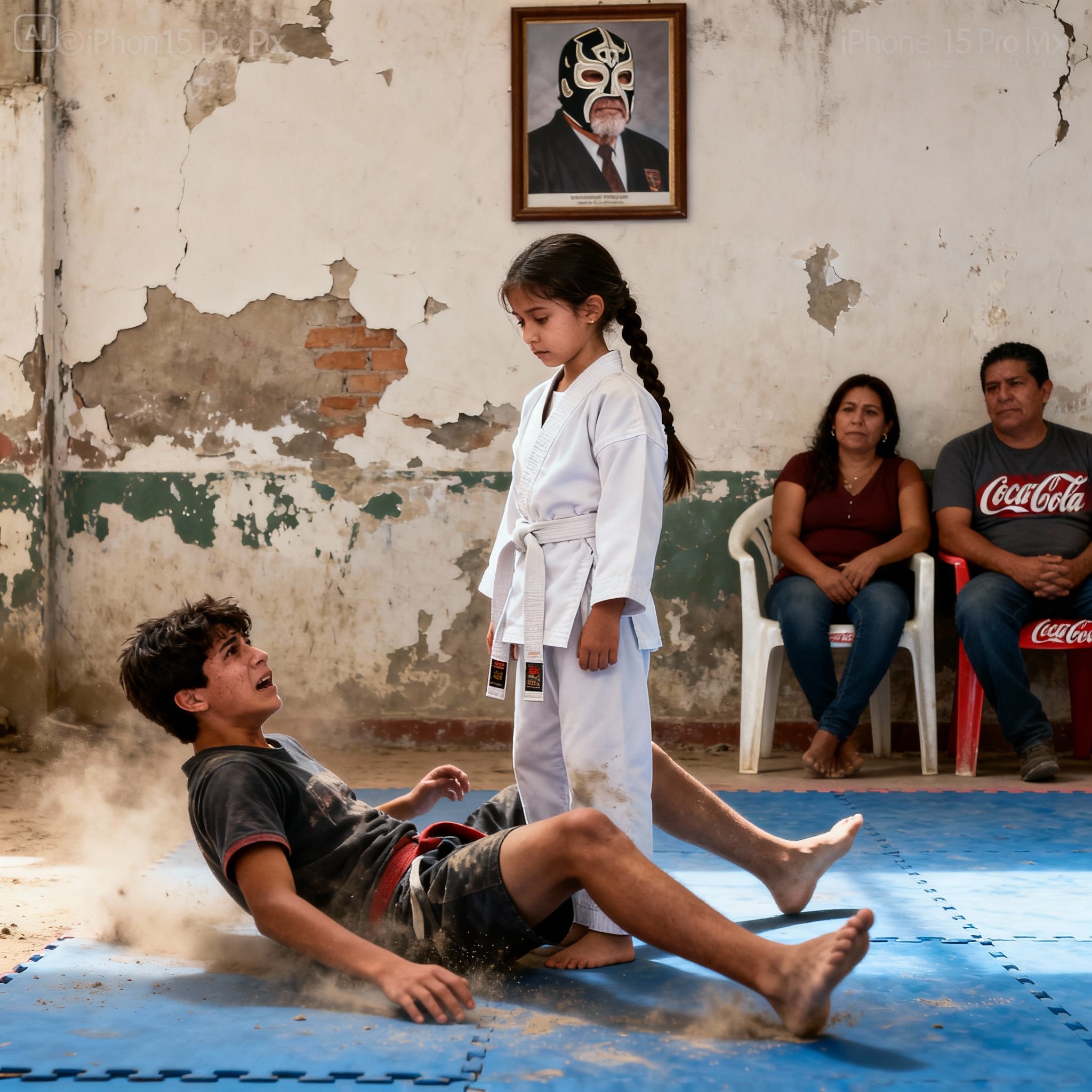 Isaura Hernández, a quien su abuelo llamaba “La Pulga”, entró con pasos cortos. Tenía once años, pero parecía de nueve. Flaca, con las rodillas raspadas y una trenza rubia ceniza que le caía sobre el hombro izquierdo. Llevaba su gi bajo el brazo, doblado con una precisión militar que contrastaba con su mochila de “Las Chicas Superpoderosas” que ya había visto mejores días.