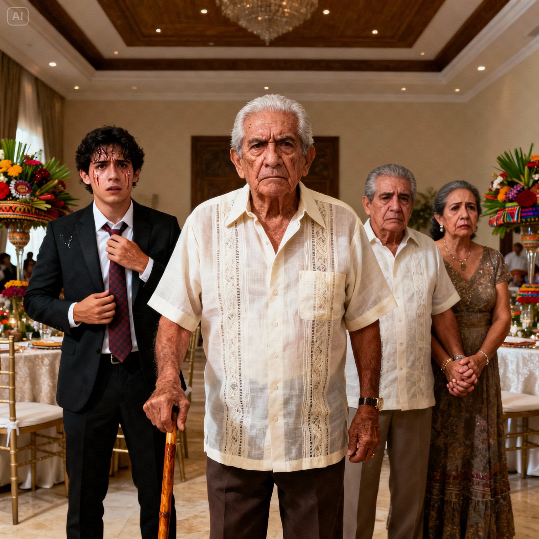 Pero el abuelo Ernesto… Ay, mi suegro. Él estaba sentado en una mesa lateral, un poco apartado, como un león viejo que vigila la manada desde la sombra. Con su guayabera impecable y su bastón de madera de mezquite apoyado en la silla, no aplaudía. Sus ojos negros, profundos como pozos de agua, no perdían detalle. Él olía la tormenta antes de que cayeran las primeras gotas.
