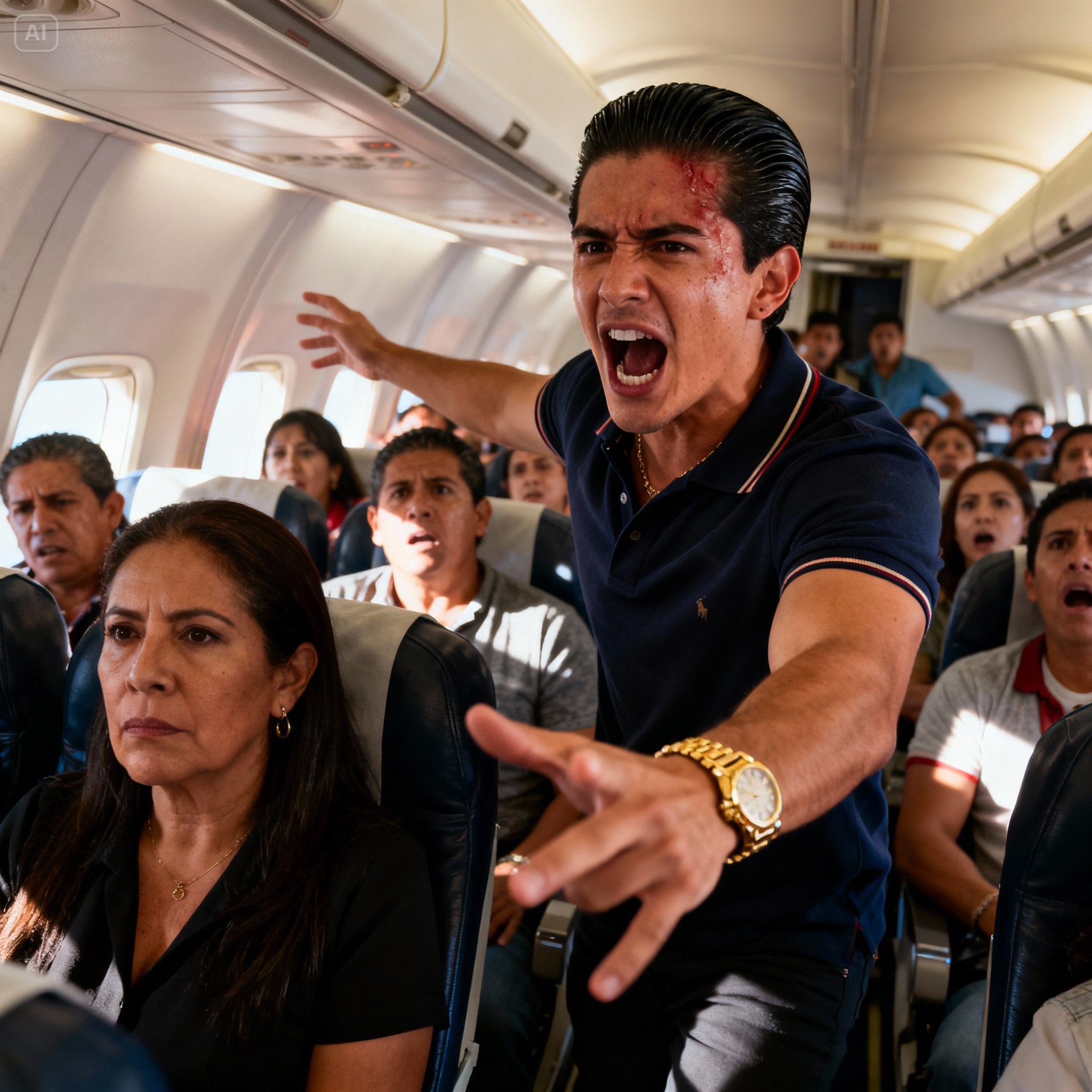 —”¡Ey! ¡Señorita! ¡Marcela! —gritó, llamando a la azafata con una urgencia patética—. ¡Ven acá, por favor! ¡Neta, tenemos que hablar!”.