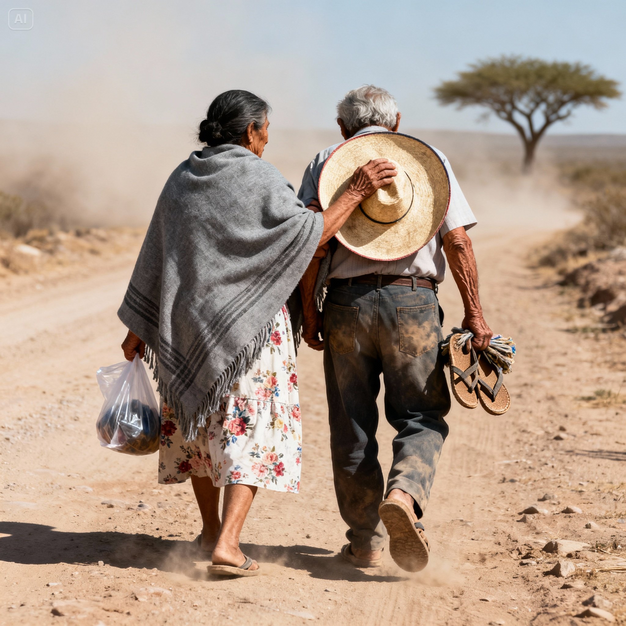 El camino hacia el pueblo fue un calvario bajo el sol de mediodía. El calor subía del suelo haciendo vibrar el aire. Amalia sentía que caminaba sobre brasas. Sus huaraches viejos tenían la suela tan gastada que sentía cada piedra del camino. Llegó al pueblo jadeando, con la boca seca y la cara cubierta de polvo blanco. La gente pasaba a su lado. Vecinos que la habían saludado por años ahora desviaban la mirada. El chisme ya había corrido: “Los echaron por pleitos de herencia”, “Dicen que el viejo ya no carbura”. La crueldad de los pueblos chicos es silenciosa y letal.