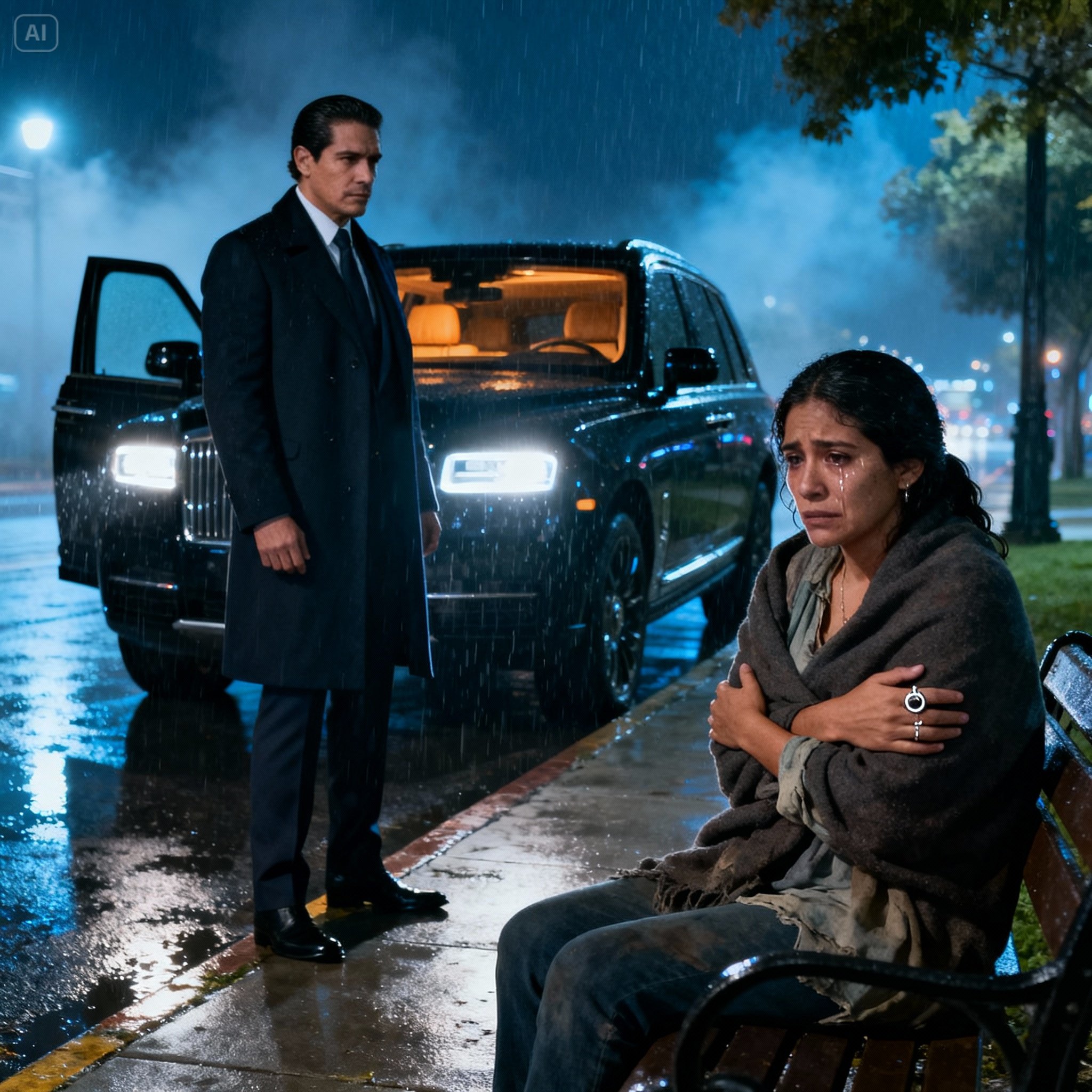 Una luz blanca, cegadora, cortó la oscuridad. Una camioneta Escalade negra, enorme, blindada y silenciosa como un depredador, redujo la velocidad en la esquina. Las llantas aplastaron los charcos con un siseo suave. Se detuvo justo frente a ella.