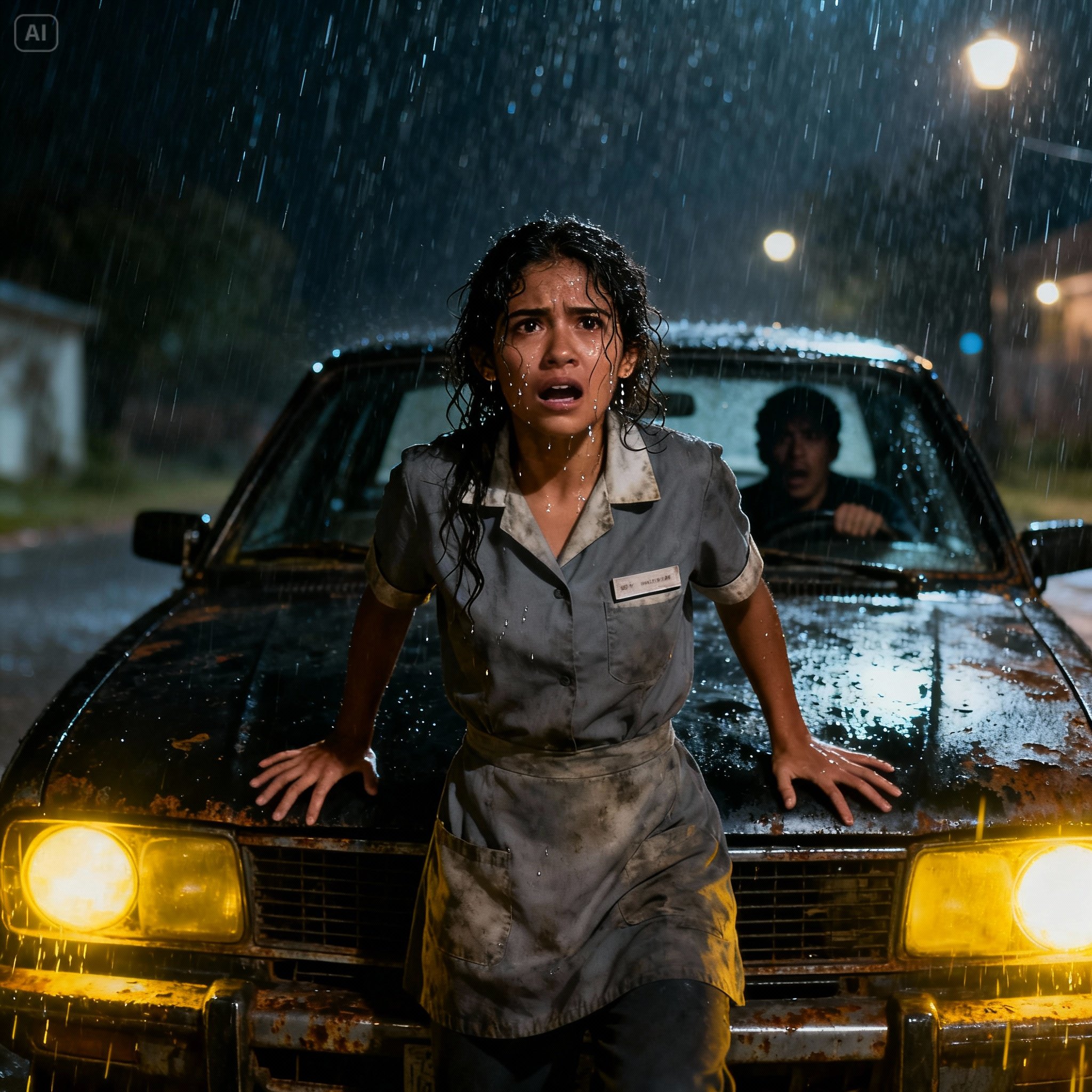 Gael frenó de golpe, asustado por la aparición repentina. El coche se sacudió violentamente. Nayeli, que observaba desde la entrada del garaje, sintió que la sangre se le helaba. Su plan perfecto se desmoronaba por culpa de una simple sirvienta.