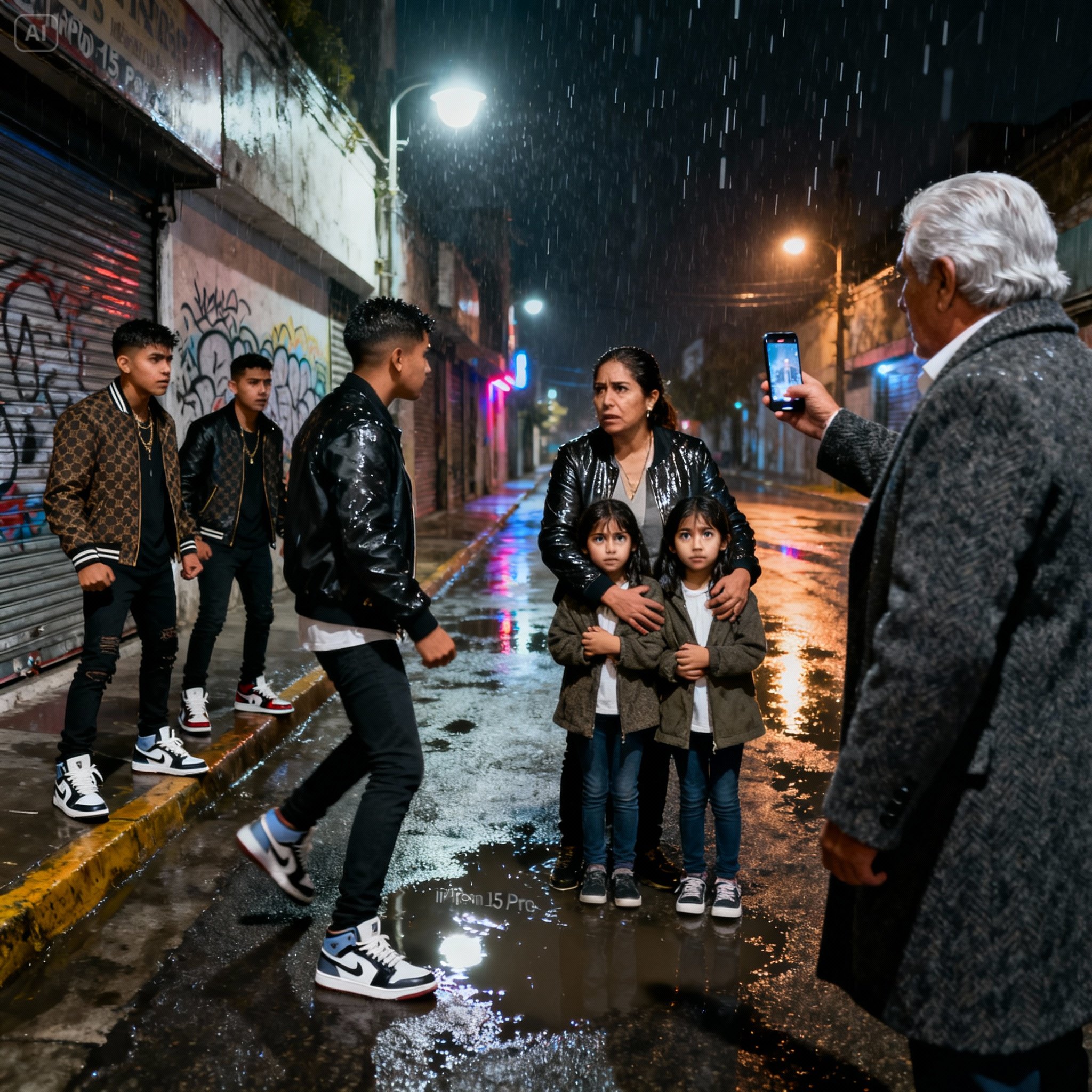 Ximena se detuvo en seco. Su cuerpo se puso rígido. Conocía ese tono de voz; era el sonido del peligro que siempre evitaba en los barrios bravos. Se dio la vuelta y se encontró con los tres jóvenes del restaurante. Sus chamarras de diseñador brillaban bajo la luz de los faros, mojadas por la lluvia.
