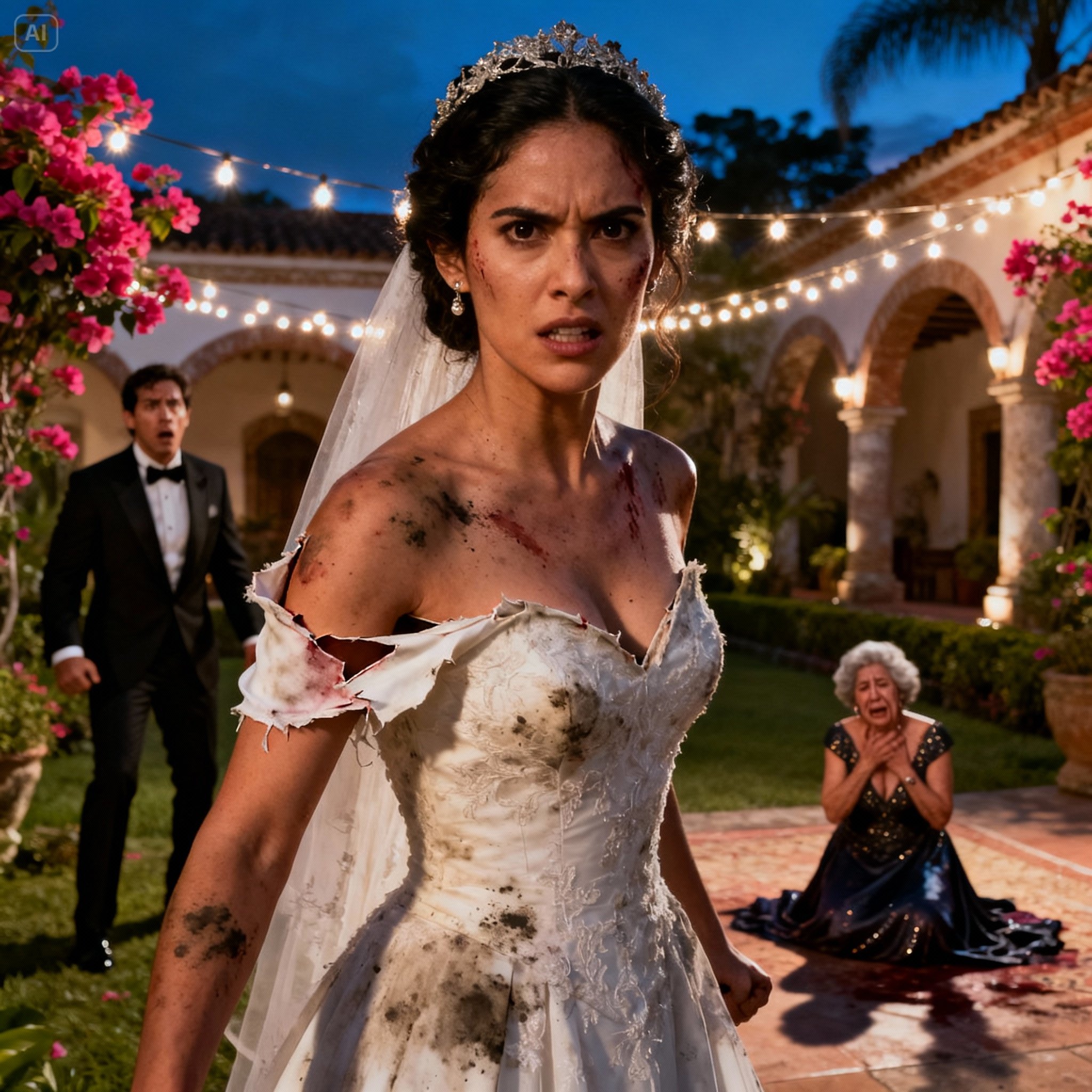 Entonces comenzó la recepción. La música sonaba, el alcohol corría. Estábamos en la terraza principal de la hacienda, rodeados de jardines oscuros.