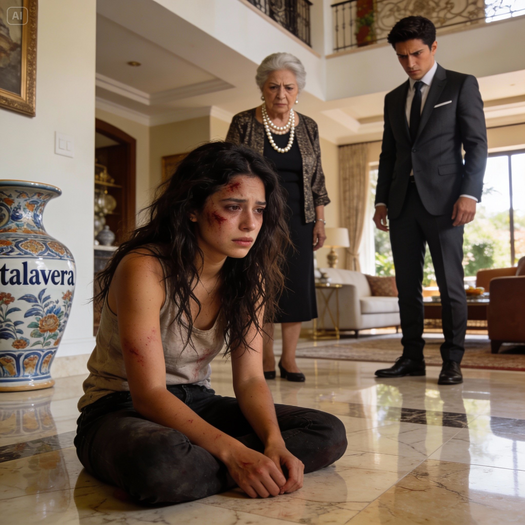 Patricia me agarró del cabello con una fuerza brutal, tirando de mí hacia arriba. El dolor en mi cuero cabelludo fue insoportable. “¡No eres nada!”, me gritaba en la cara, “¡Eres una limosnera que no sabe ni sostener un jarrón!”. Las lágrimas me nublaban la vista, pero pude ver a las empleadas mirando desde las esquinas; ninguna se atrevía a ayudarme por miedo a perder su trabajo. Entonces Kevin dio un paso al frente con una mirada de pura malicia. “Tal vez necesita aprender la lección”, dijo con calma. Y entonces, sentí su zapato de piel impactar directamente en mis costillas.