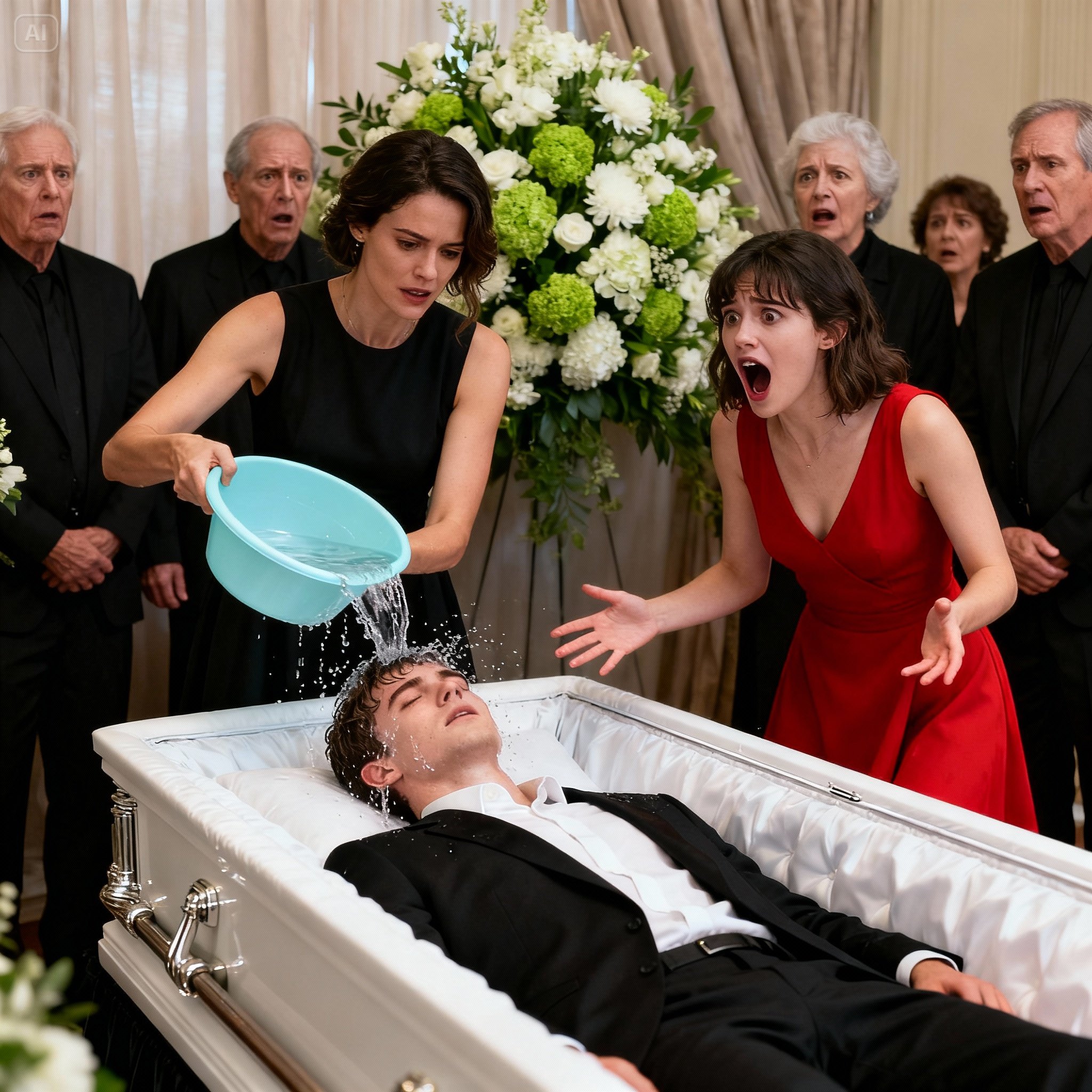 Nadie entendía nada. Los murmullos cesaron de golpe. Las miradas se clavaron en ella mientras se acercaba al ataúd abierto de caoba fina, rodeado de coronas de rosas blancas y listones azul marino. Marina se detuvo frente al cuerpo de Daniel, su esposo, el hombre por el que había llorado, sufrido y, finalmente, planeado. Y entonces, sin decir una palabra, volcó el agua helada directamente sobre su cara.