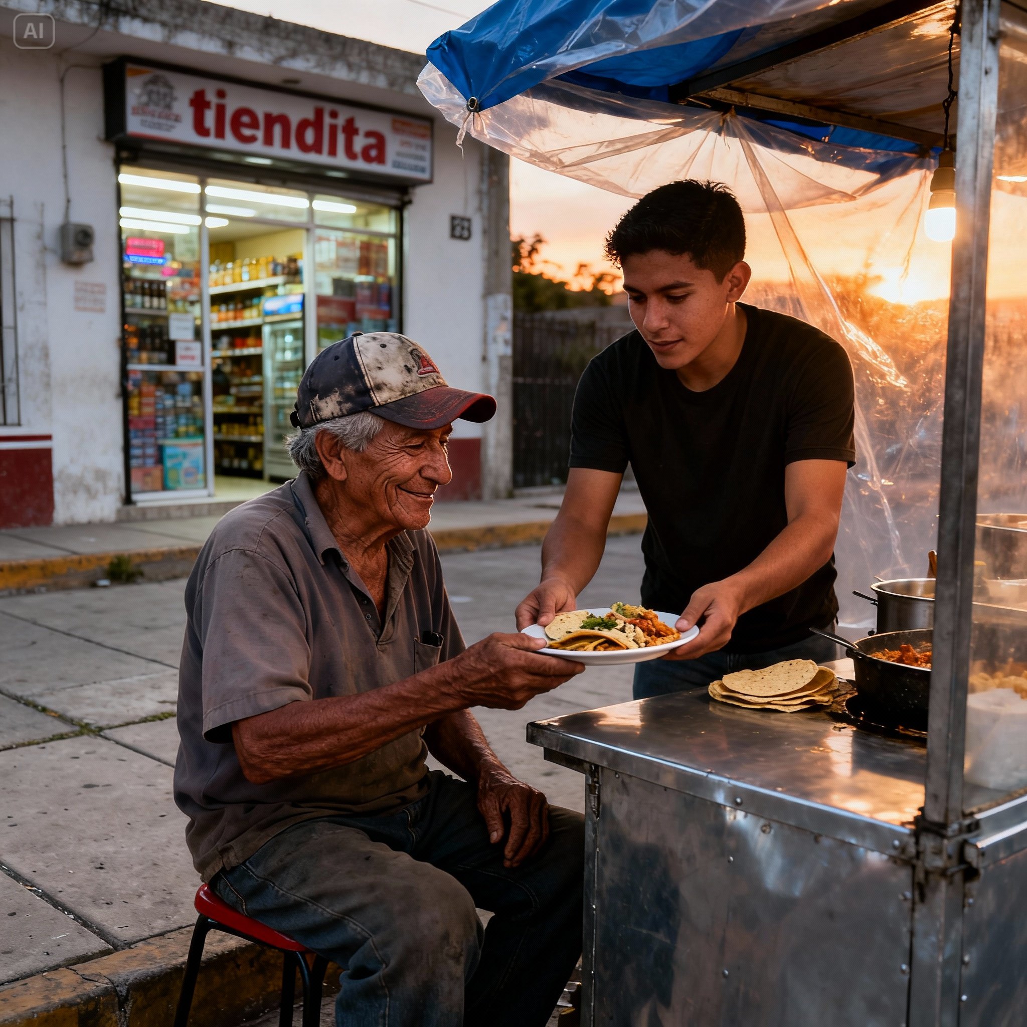 —Disculpen que me meta. Pero miren esa foto de ahí arriba. Ese era mi padre. Un día le dije que era un estorbo y casi lo mato de tristeza. No saben cuánto daría yo por poder servirle un taco más hoy. No cometan mi error. El plato se llena mientras están vivos; después, solo queda el remordimiento.