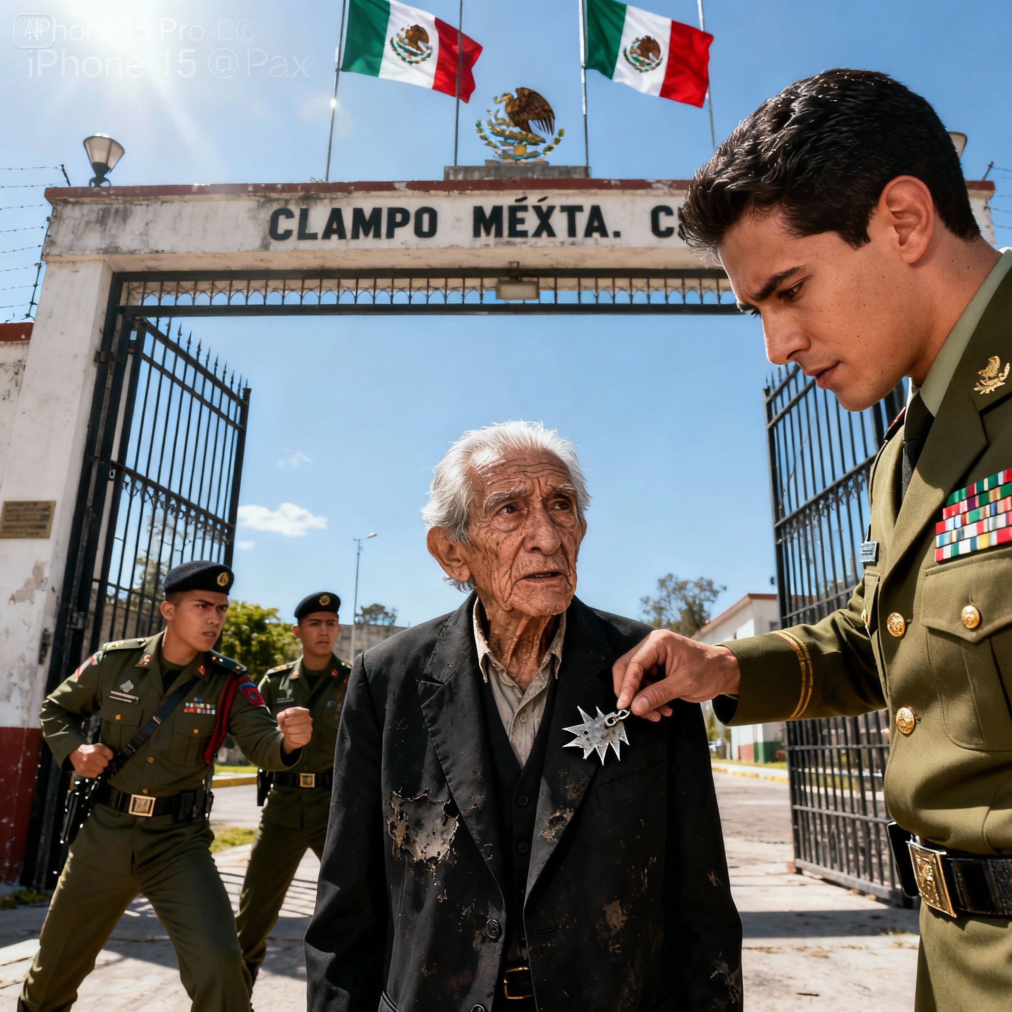 La confrontación flotaba en el aire. El guardia era un muro de reglas vacías. Solo veía a un anciano confundido, un pobre diablo que quizás buscaba limosna o se había equivocado de camino. No podía ver la historia que tenía delante. No tenía la capacidad de ver que estaba bloqueando el paso a la encarnación misma de los valores que ese recinto militar juraba proteger.