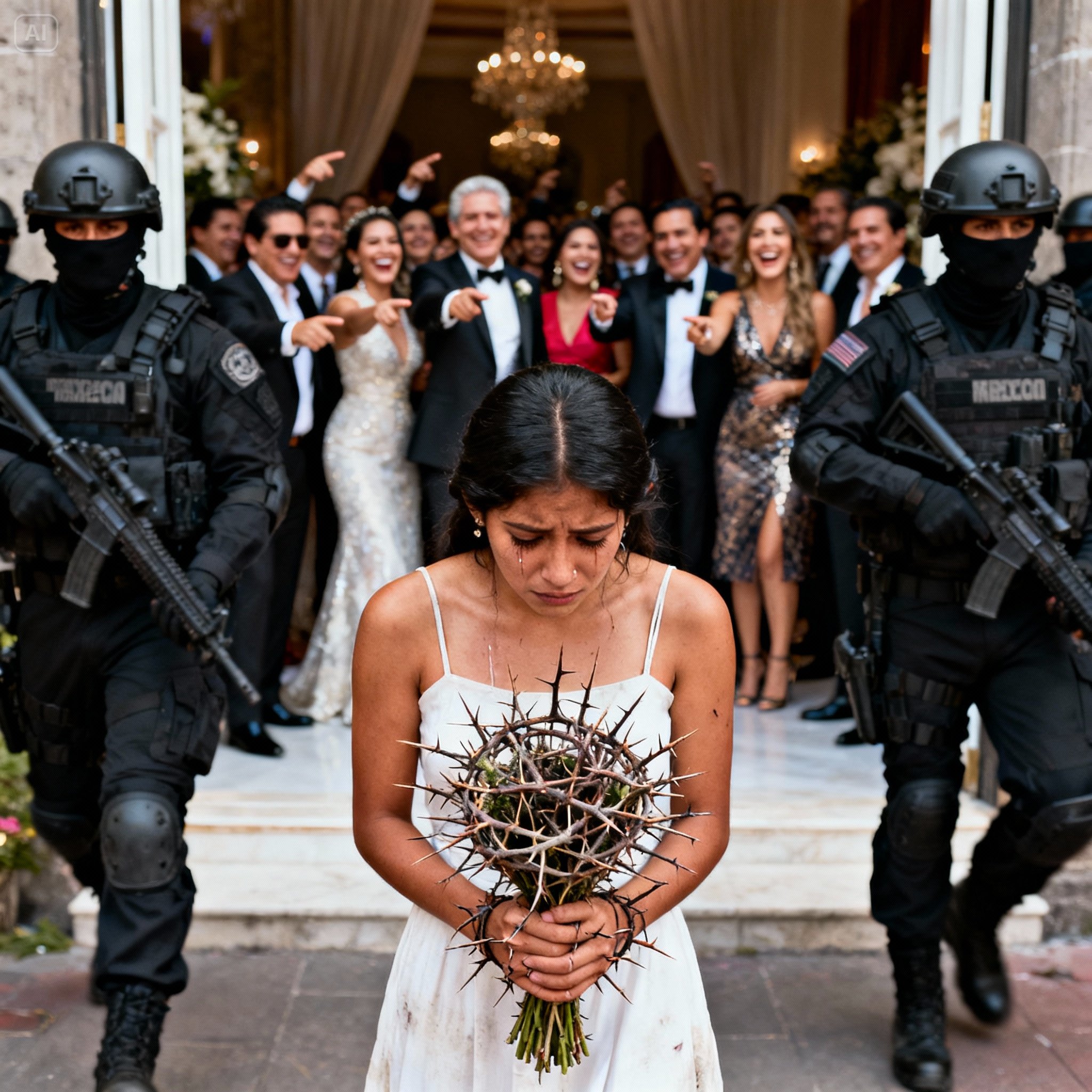 Los invitados gritaron y se encogieron en sus asientos. Afuera, bloqueando toda la calle, había un ejército de camionetas negras. Suburbans blindadas, Tahoes con tumbaburros, formando una muralla de acero. Las llantas levantaban polvo. Un helicóptero pasó rasante sobre el techo de la iglesia, haciendo vibrar los vitrales.