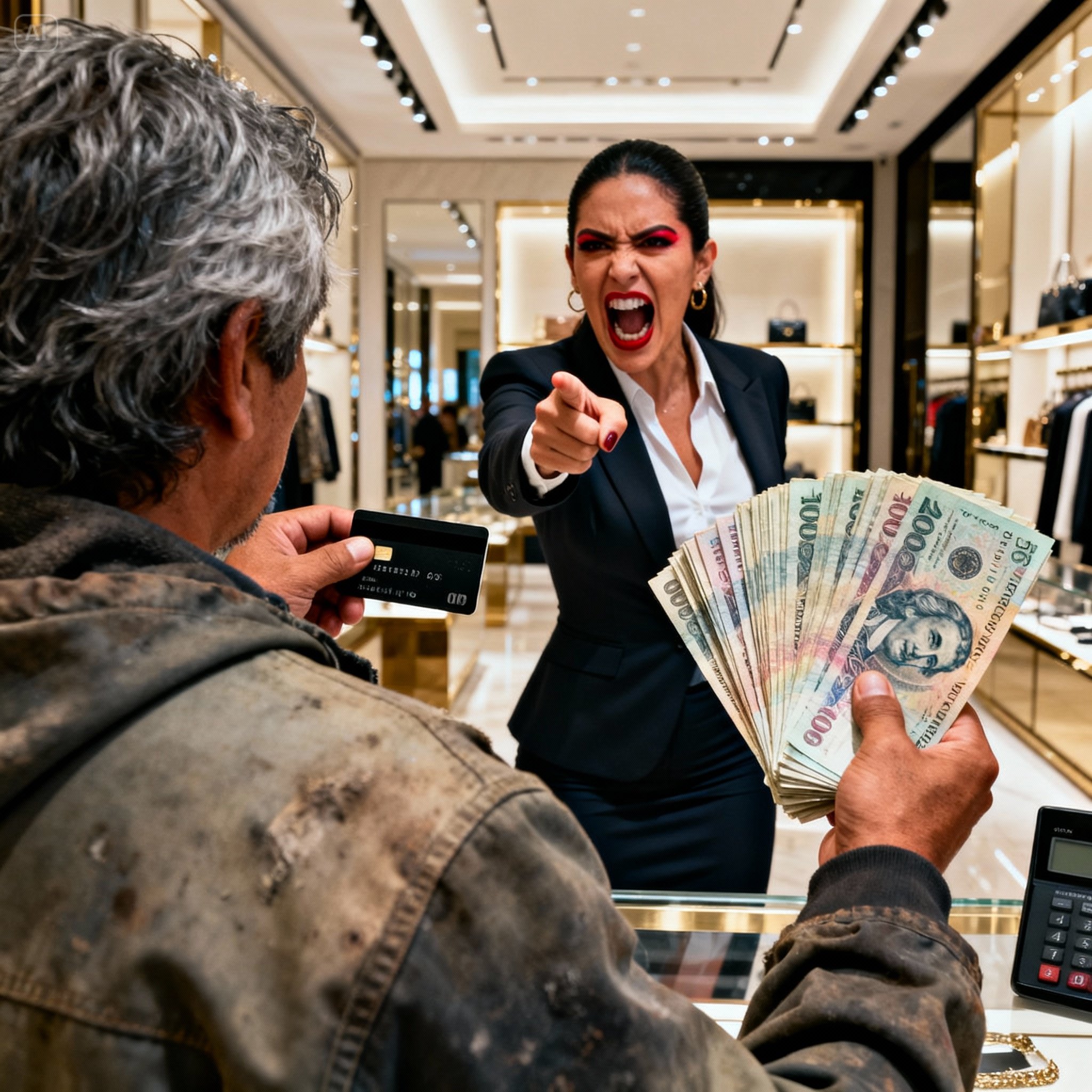 Leticia se quedó con la boca abierta. Miró el dinero. Miró la tarjeta. Me miró a mí. Su cerebro no lograba conectar los cables: vagabundo + tarjeta exclusiva = error de sistema.