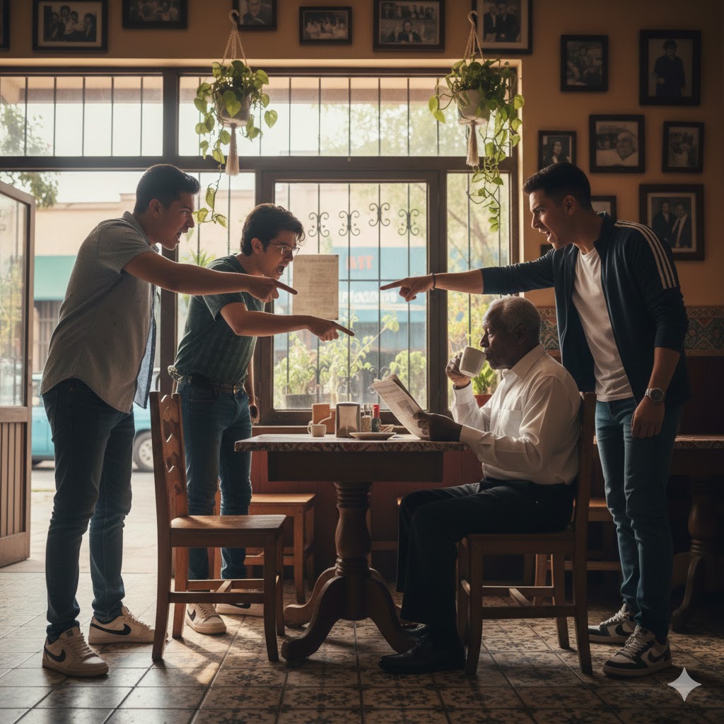 “Miren a este viejo, ocupando espacio”, soltó Tadeo con una voz lo suficientemente alta para que todos lo escucháramos. “Seguro lleva aquí toda la noche con una sola taza de café, como siempre lo hacen ellos”.