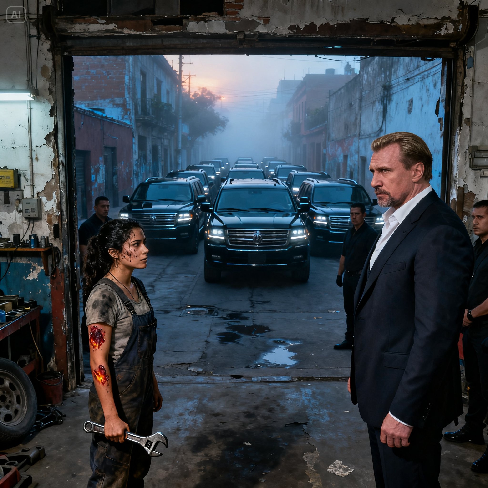 El estruendo comenzó bajo, como un trueno distante rodando sobre el valle de México, y luego creció hasta convertirse en algo que hizo temblar los vidrios rotos de su pequeño taller. Una camioneta, luego tres, luego siete, hasta que dejó de contar. Doce vehículos en total, doce portadores de muerte, convergiendo en su taller en ruinas en el lado sur, como un convoy blindado respondiendo a un llamado de guerra.