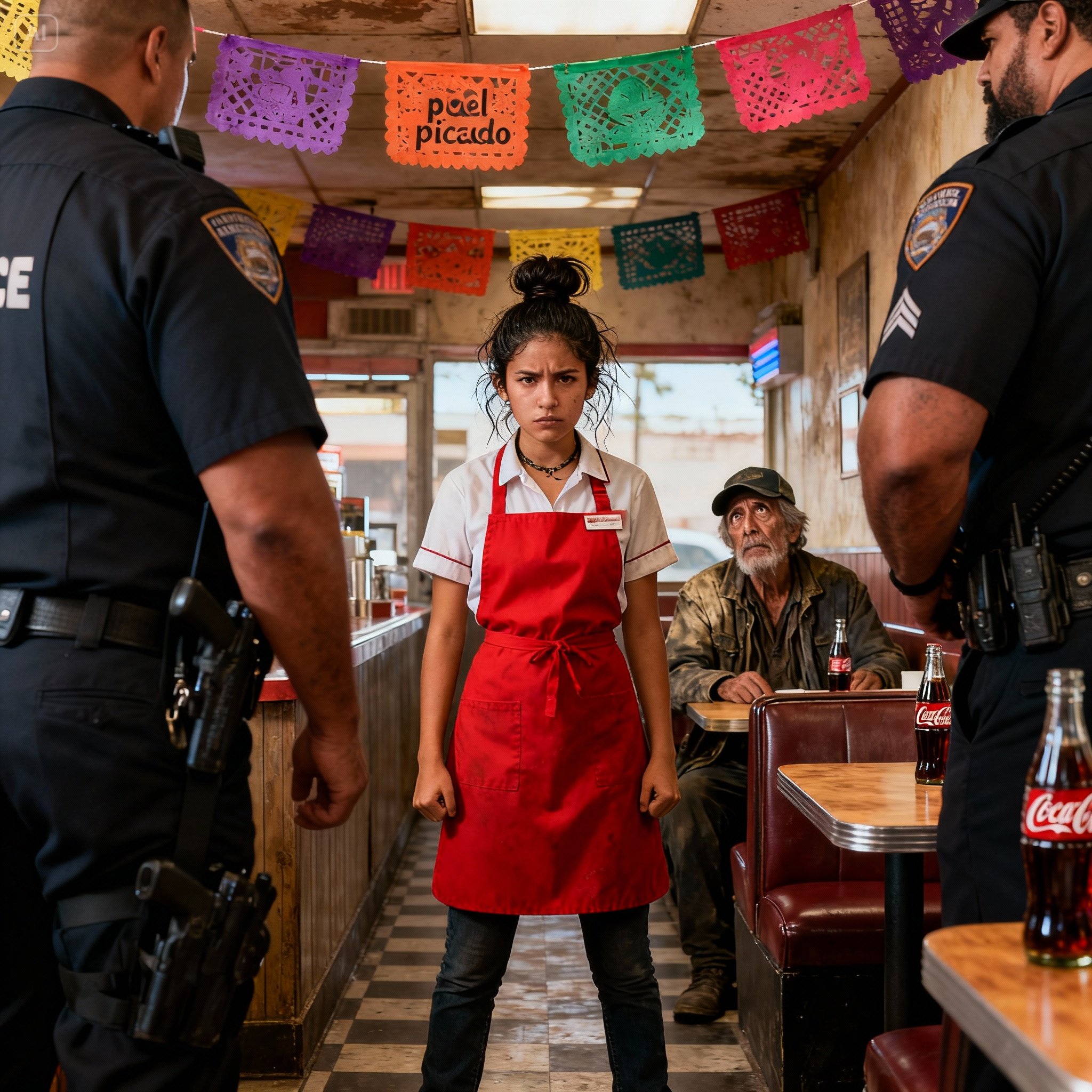 —Oficiales —dijo Sara. Su voz salió más aguda de lo que hubiera querido, pero clara—. ¿Hay algún problema aquí? El señor es cliente. Ya pagó su consumo, igual que todos los demás.
