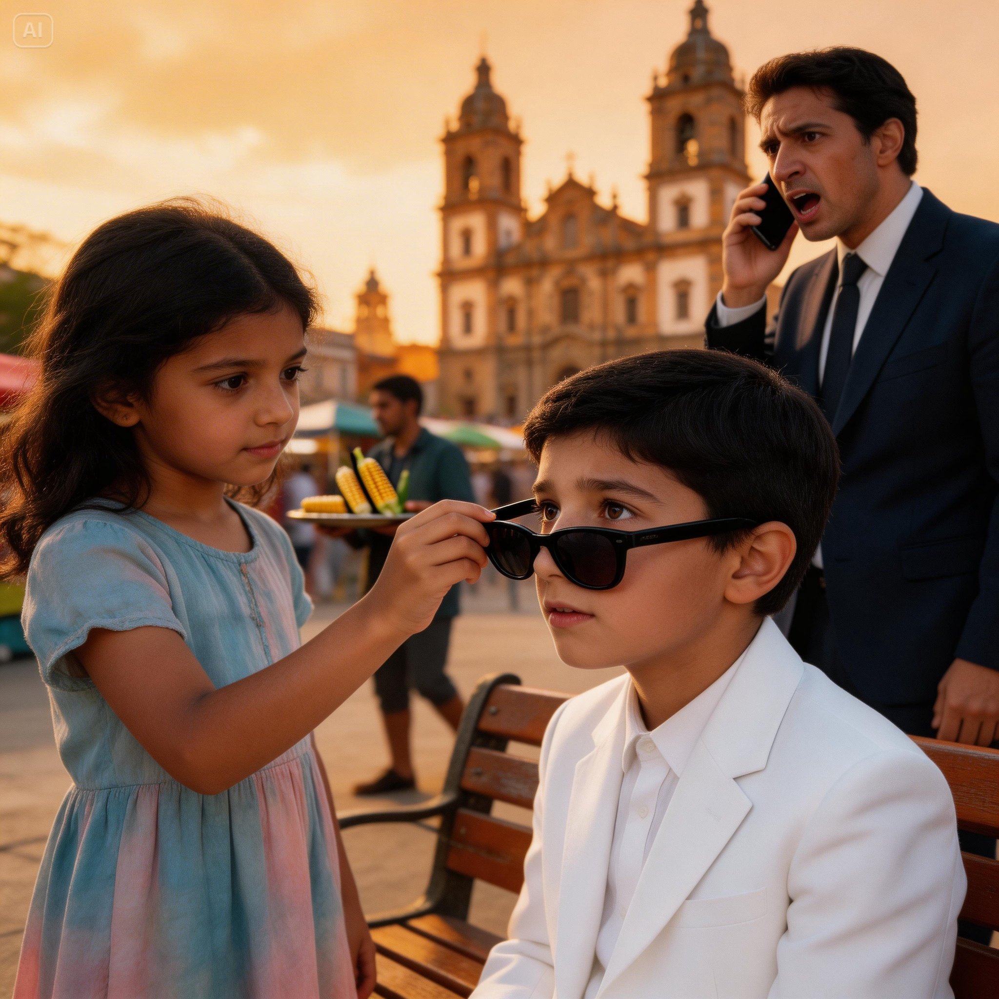 Lo llevé hacia una banca de madera bajo la sombra de un viejo árbol. Me quedé a unos metros, vigilando, mientras revisaba correos en mi teléfono. Estaba rodeado de gente, pero nunca me sentí tan solo. Miré a mi hijo: traje blanco impecable, lentes oscuros de marca, manos sobre las rodillas. Parecía una estatua de porcelana en medio del caos del centro.
