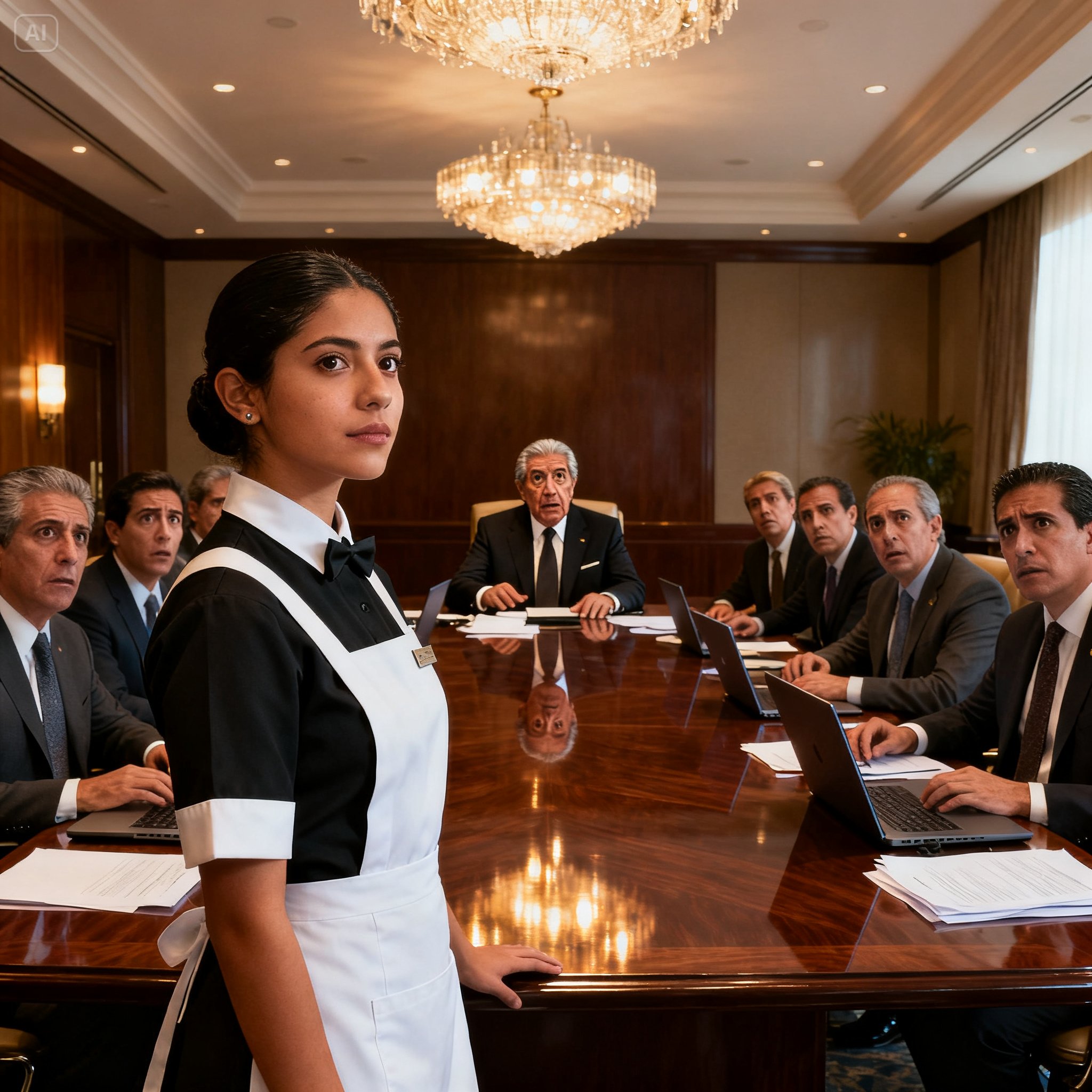 El ambiente se tensó hasta el punto de ruptura. El aire acondicionado zumbaba, indiferente al drama humano. Los meseros, pegados a las paredes como estatuas invisibles, contenían la respiración.