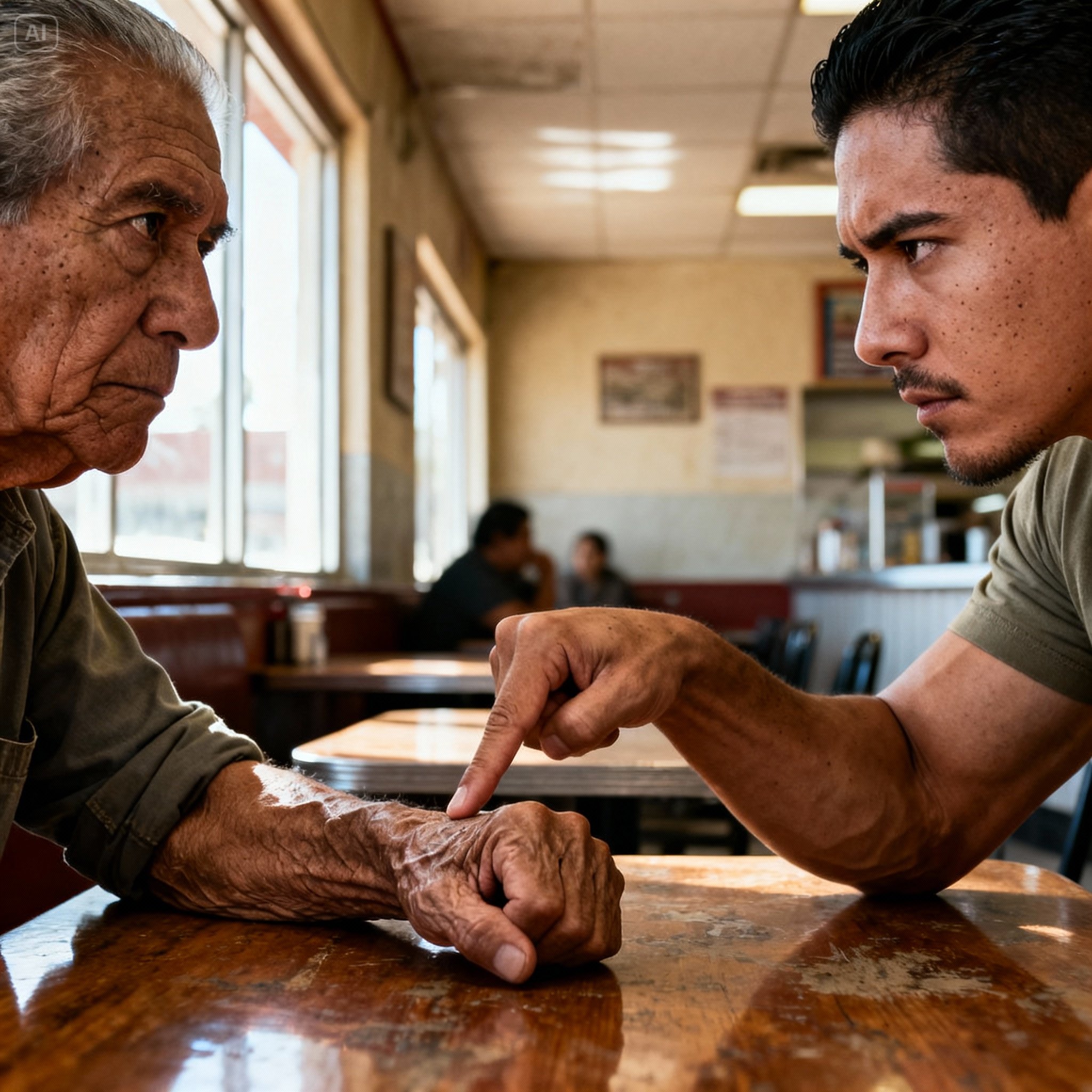 El mundo se detuvo para el viejo. El olor a café rancio y grasa de tocino de la fonda se desvaneció instantáneamente, reemplazado en un segundo por el olor metálico y espeso de la sangre y la tierra mojada de la selva chiapaneca. El ruido de los platos en la cocina se convirtió en el distante y rítmico womp-womp de los rotores de un helicóptero Bell que nunca llegaría a tiempo.