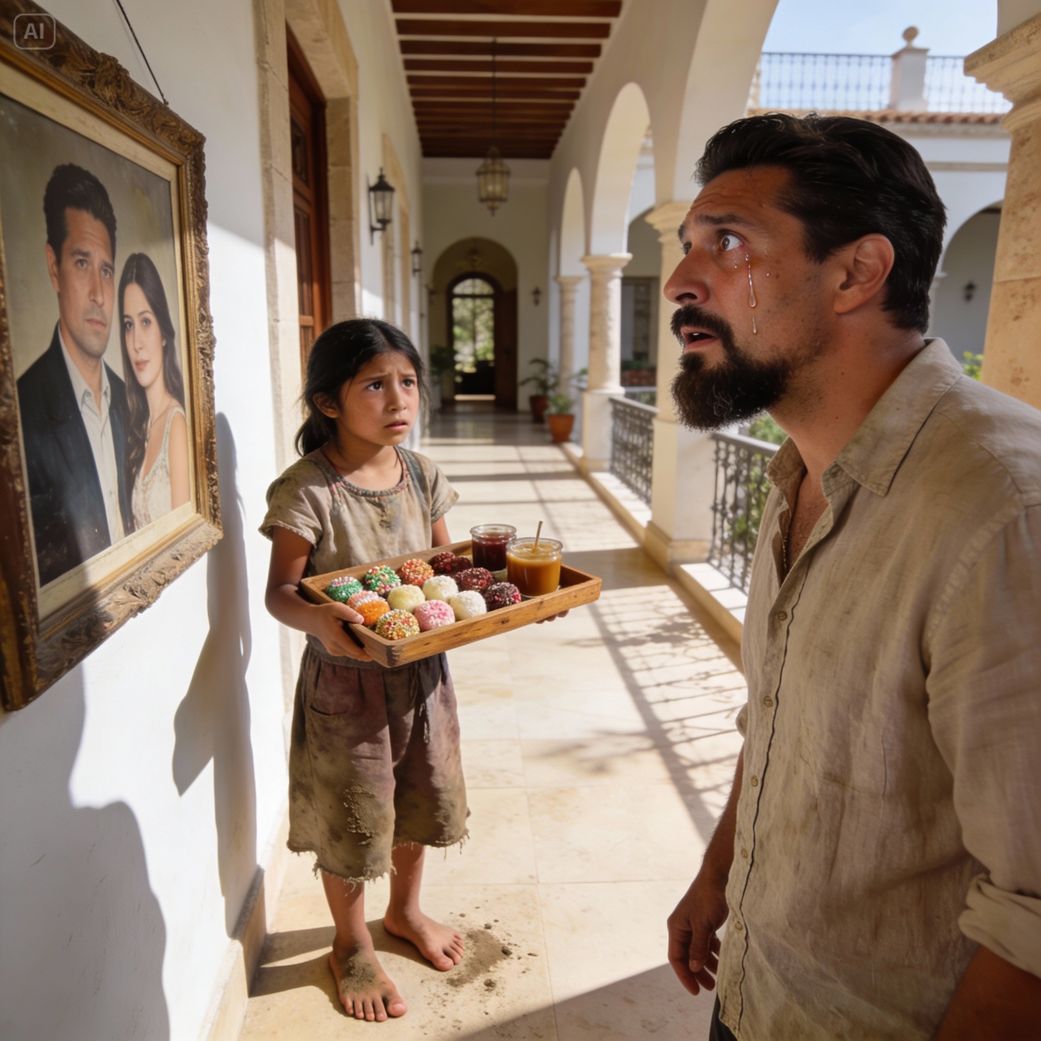 Pero la niña estaba aterrada. Mi reacción, mi mansión, mi desesperación… todo era demasiado para ella. En su mundo, los hombres ricos no lloraban por fotos de vendedoras de dulces. Ella pensó que quizás estaba en problemas.