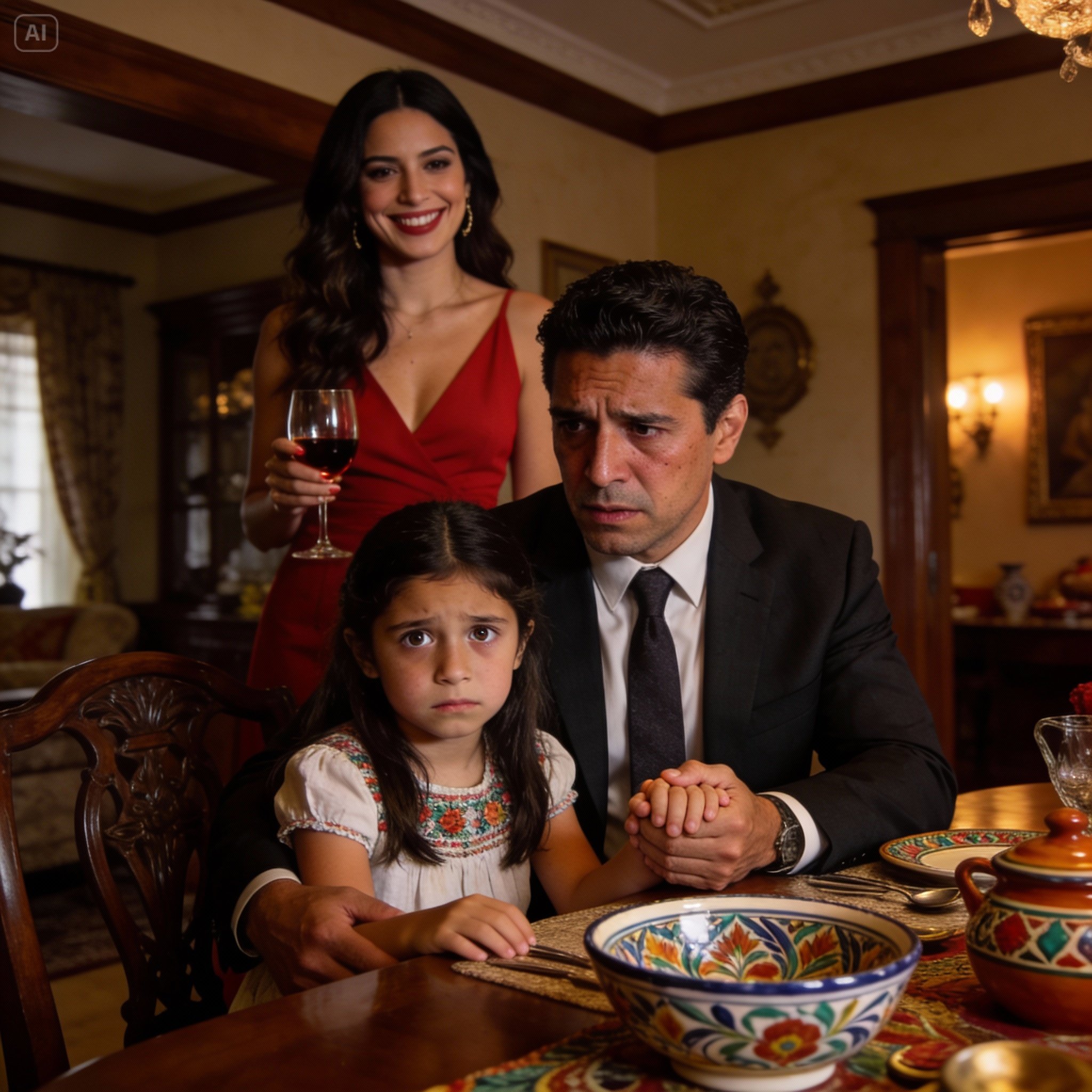 Camila ni se inmutó. No hubo piedad en su mirada. Con un movimiento frío y calculado, inclinó su copa y dejó caer un chorro de vino tinto sobre el mármol que mi hija acababa de limpiar con tanto esfuerzo. El líquido oscuro se extendió como sangre sobre la piedra blanca. —Ups. Qué torpe soy —dijo con sarcasmo—. Ahora tienes que limpiar eso también. Y rápido. ¿O quieres que le cuente a tu papá lo “mala niña” y “grosera” que has sido hoy? Recuerda lo que te dije de las cenizas de tu madre.