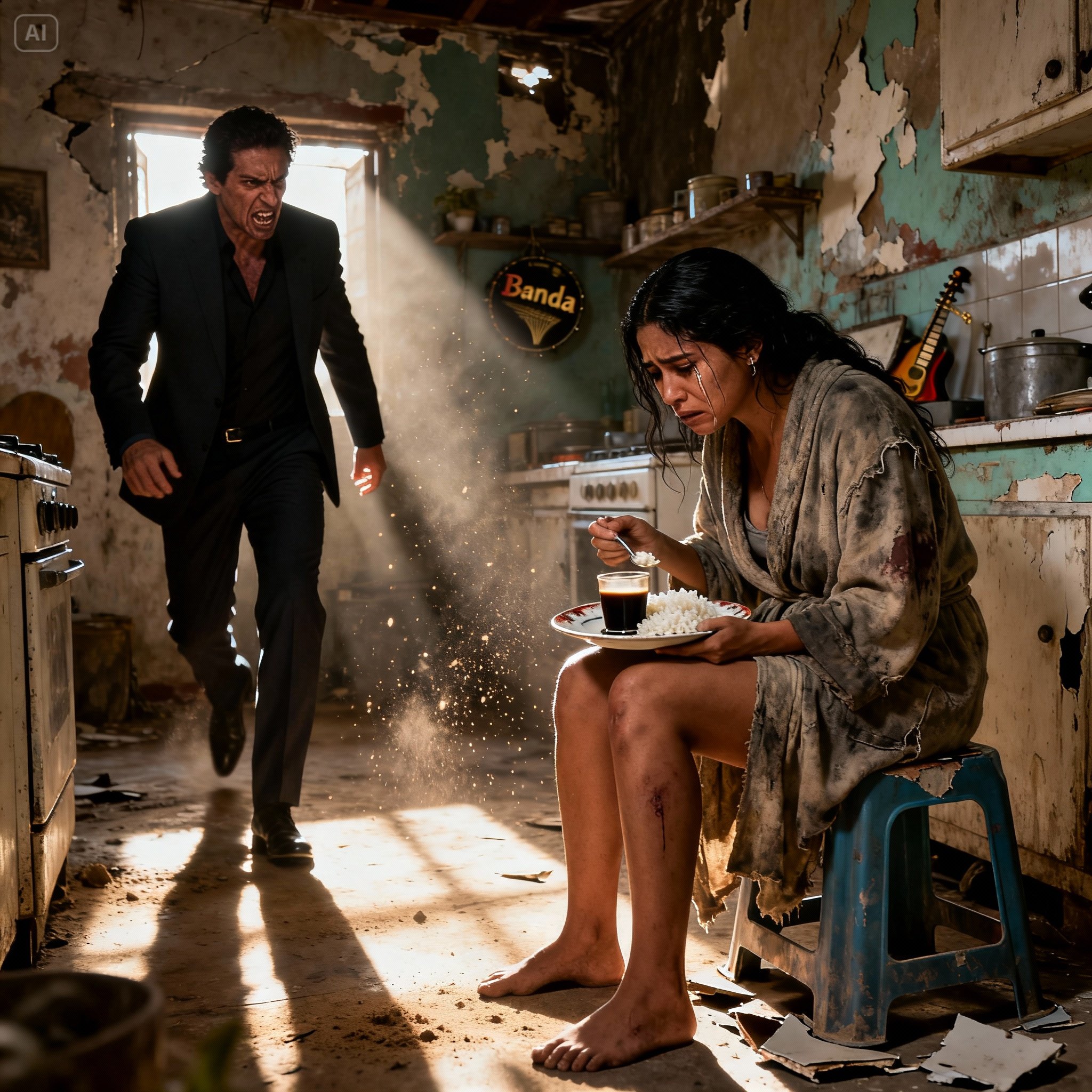 Me levanté despacio. Limpié mis lágrimas con el pañuelo de seda de mi traje. Miré el plato de comida en la mesa. Miré sus manos lastimadas. Y luego miré hacia la puerta por donde se escuchaba la música de banda y las risas de mi “familia”.