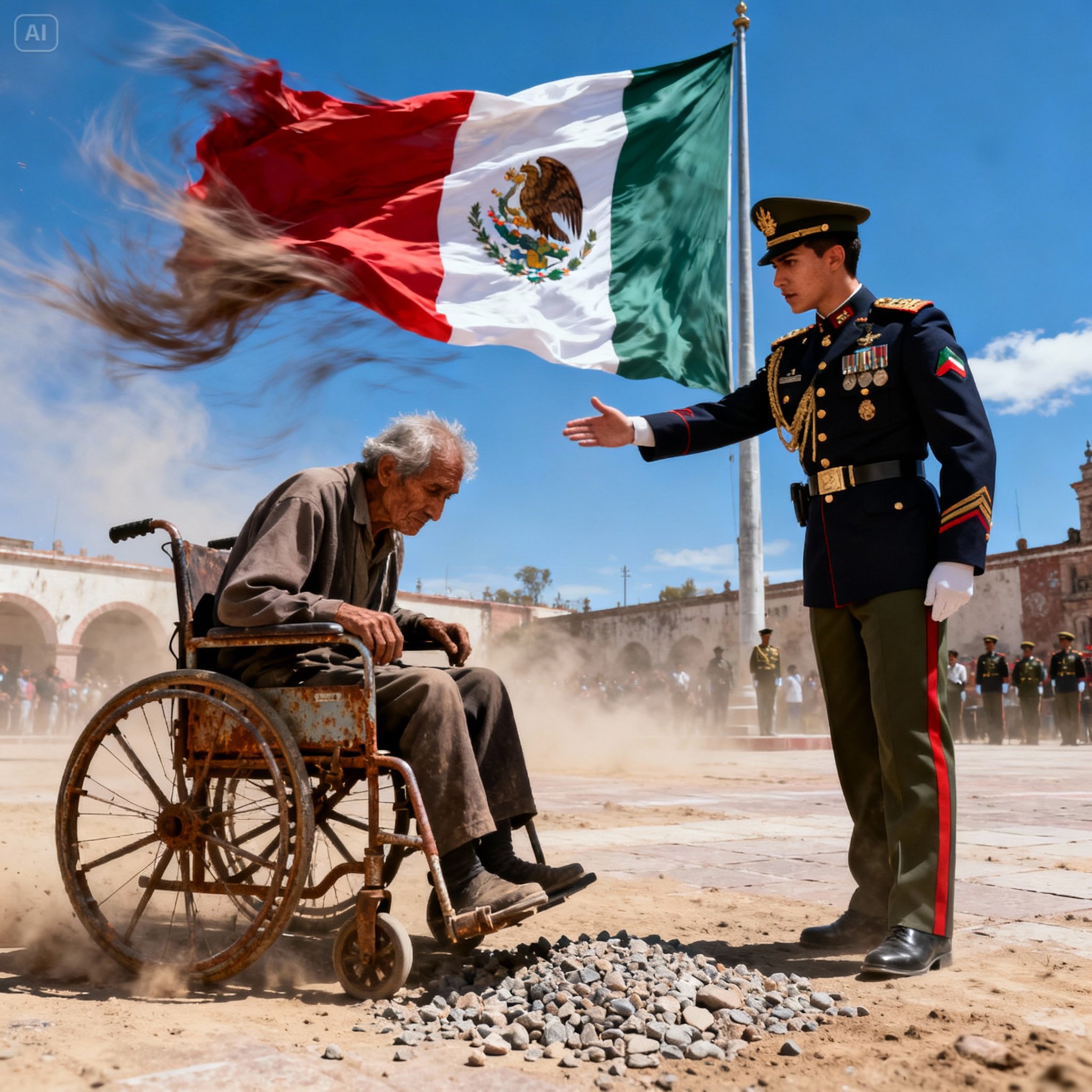 Me dio un coraje irracional. No sabía por qué, pero me hirvió la sangre al escuchar esas risas contenidas. Quería gritarles que tuvieran respeto por las canas, pero mi rango de Cabo no me permitía ni mover un músculo facial. El viejo, ignorando las miradas de desdén y los murmullos, no se dirigió a la salida. Con una terquedad silenciosa, siguió rodando hasta acomodarse cerca de la base de concreto del asta bandera monumental. Ahí se quedó, bajo el sol directo, sin sombra, sin una botella de agua, solo él y el concreto.