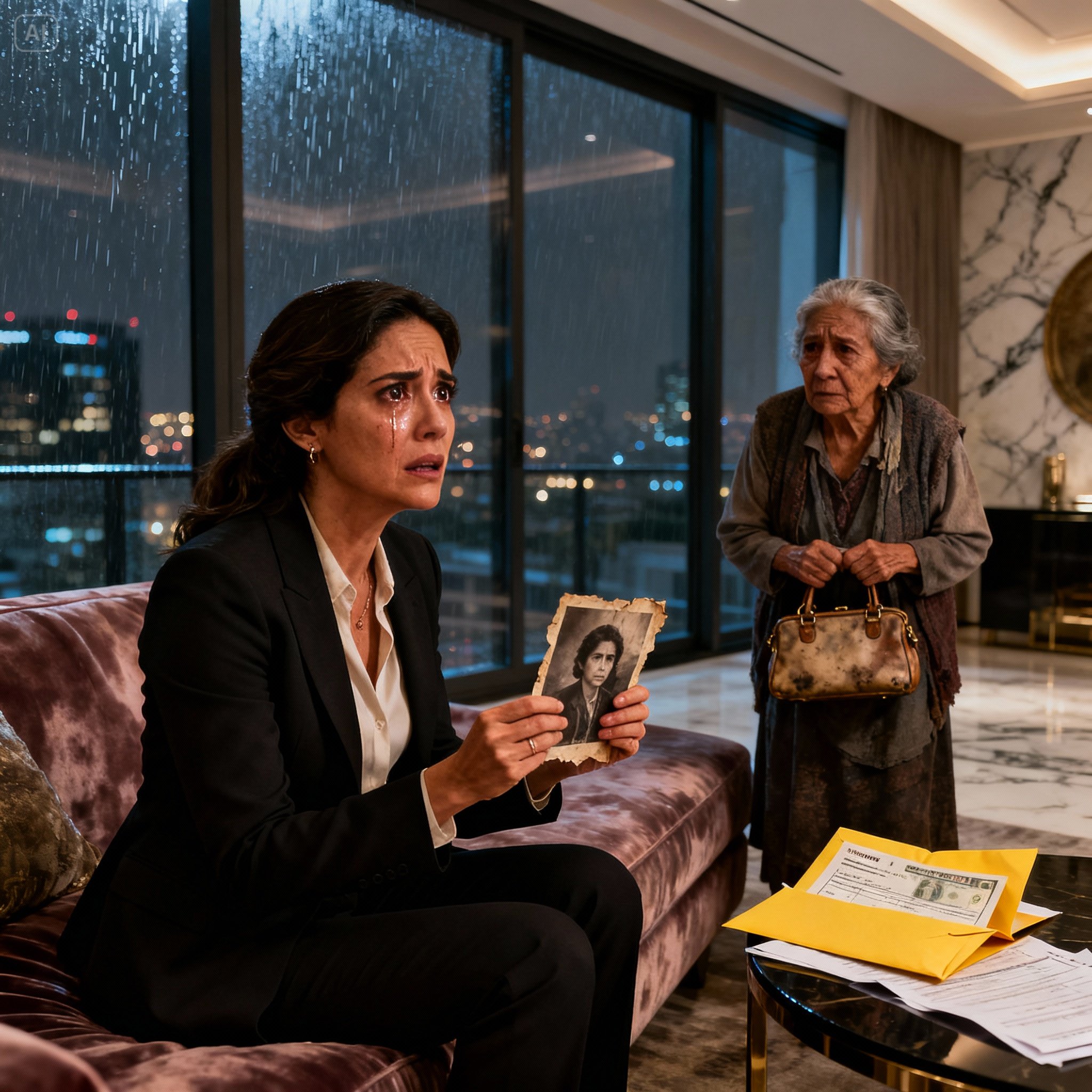 Me quedé allí, de pie en medio de la sala, con las rodillas temblando violentamente. Mis ojos, que minutos antes habían mirado a esa anciana con una mezcla de lástima y desconfianza, ahora estaban fijos en la mesa de centro de cristal. Allí yacía la prueba nuclear que acababa de detonar mi vida: la fotografía.