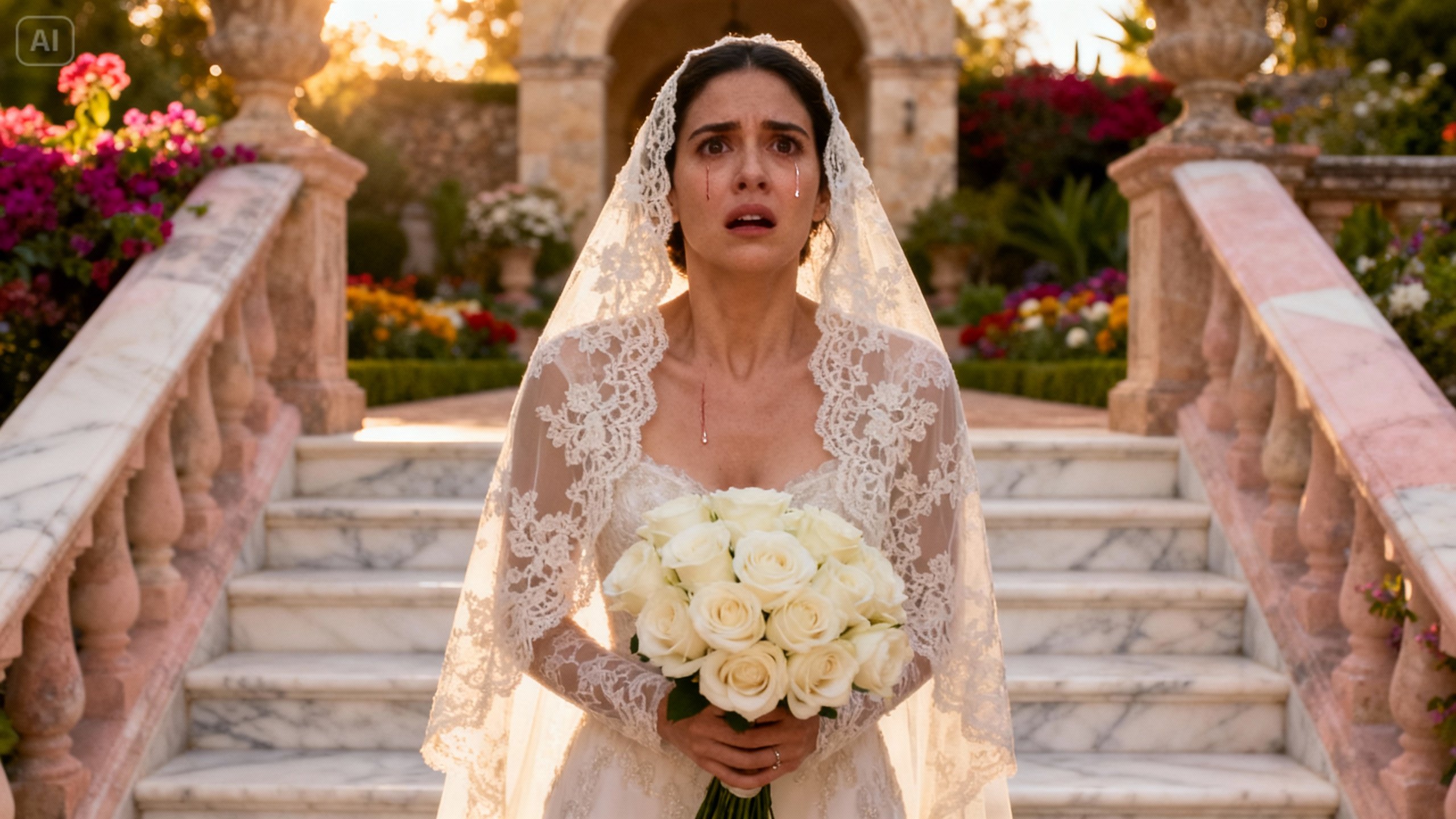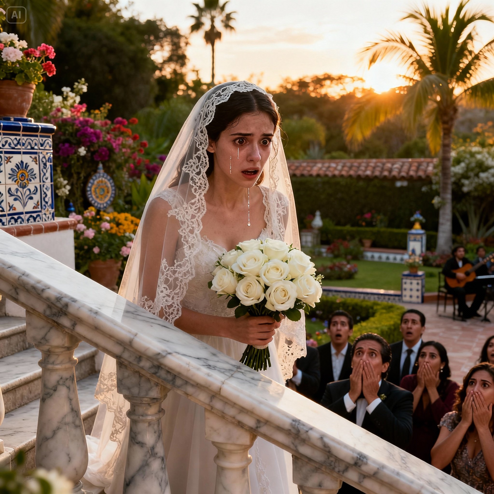 Valeria, en lo alto de la escalera, apareció con el ramo apretado, gritando: “¡Esto es un absurdo! ¡Está haciendo escándalo porque quiere arruinar mi día!”