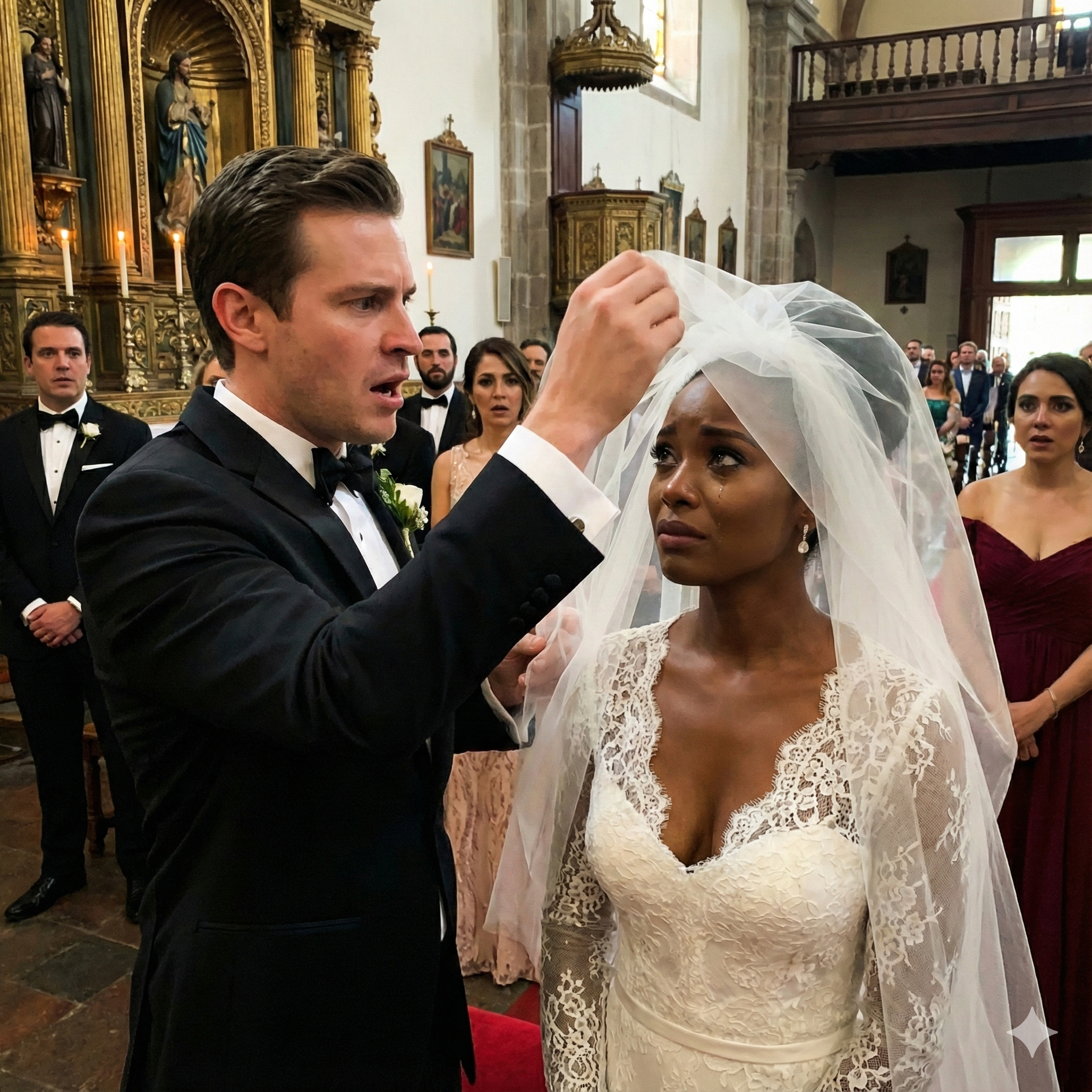 No era un velo normal. Era una cortina. Espeso, bordado con patrones densos, diseñado no para adornar, sino para ocultar. Caía desde una tiara de diamantes hasta su cintura, cubriendo su rostro por completo.