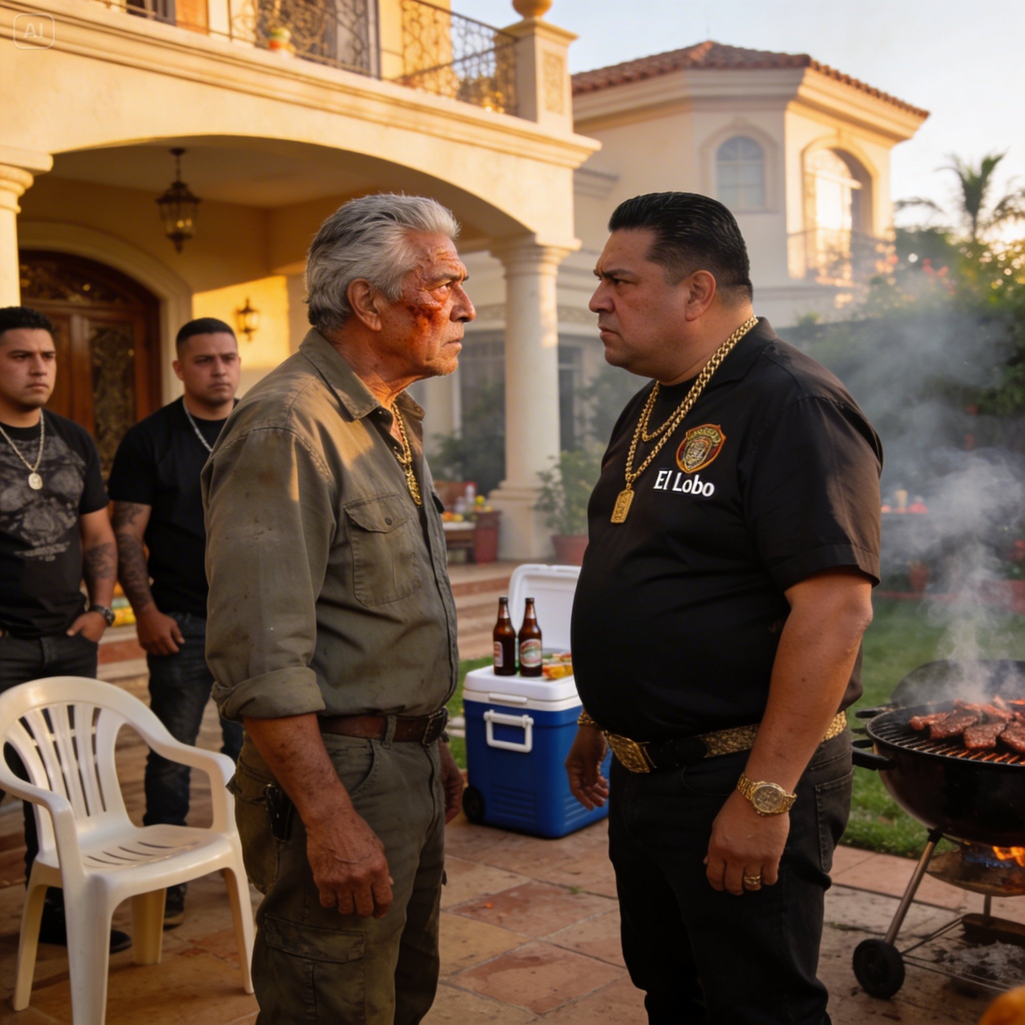 Las puertas de la Suburban y de una segunda camioneta, una Lobo que la escoltaba, se abrieron casi simultáneamente. De ellas se derramó una plaga de hombres. Conté seis, no, siete. Rostros morenos, curtidos, la mayoría con barbas descuidadas y la mirada vacía de los depredadores. Gruesas cadenas de oro falso colgaban de sus cuellos. Eran la definición perfecta de la escoria. Dos de ellos, los más grandes, desenrollaron de sus manos cadenas de motocicleta, el metal brillando bajo el sol.