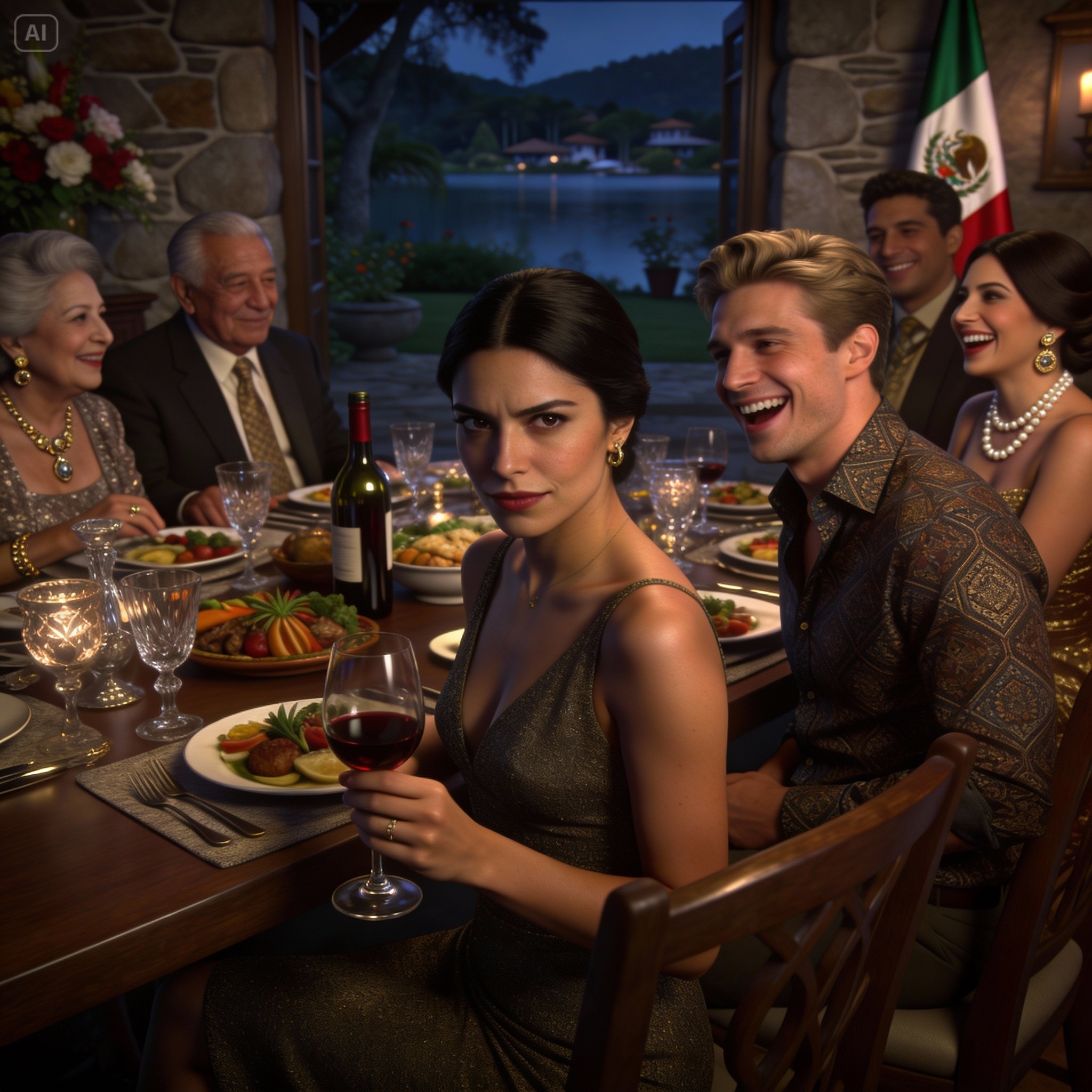 Me senté. Frente a mí tenía a Regina y a su esposo, un tipo llamado Bernardo que se dedicaba a “consultorías” y que tenía la personalidad de un mueble caro: decorativo pero inútil. A la cabecera, Don Felipe presidía la mesa como un rey feudal, revisando su reloj como si tuviera cosas más importantes que hacer que cenar con su familia.