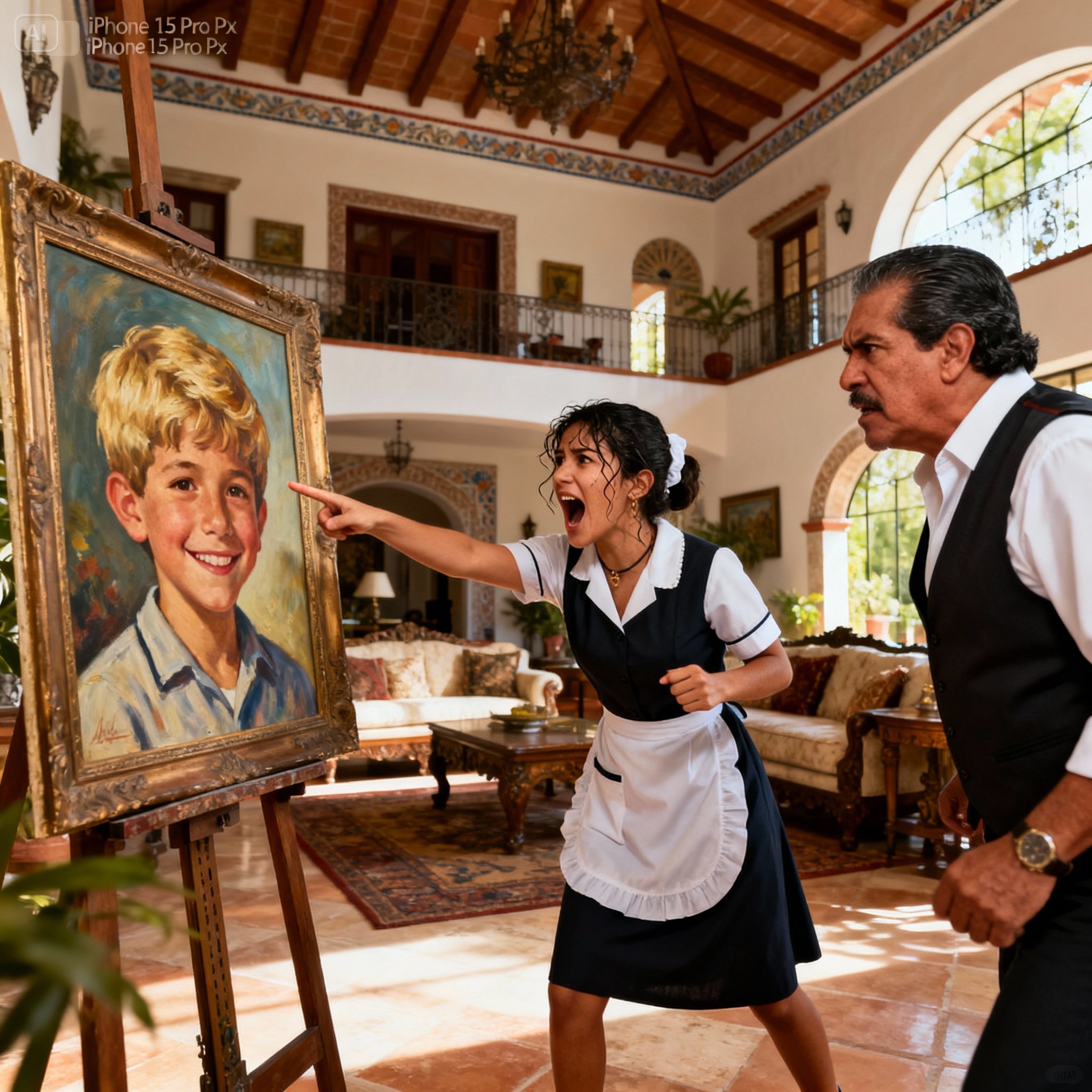Unos metros más allá, el jarrón de cristal checo —una pieza por la que pagué más de lo que mucha gente gana en un año— yacía hecho añicos. Pero a Camila no le importaba el jarrón. El paño de limpieza estaba tirado a sus pies, sucio y olvidado. Ella estaba allí, parada frente al retrato gigante que dominaba el salón principal, temblando como si acabara de ver al mismo diablo.