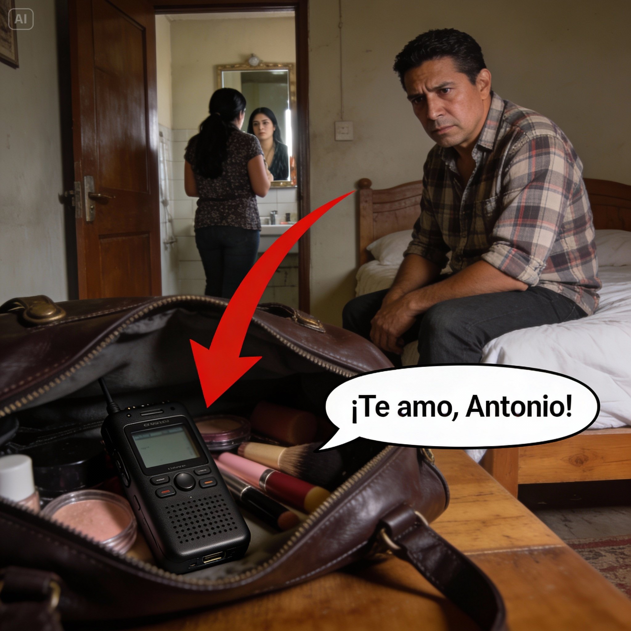 Damián esperó a escuchar el agua de la regadera. Se levantó despacio, como si le pesaran los años, y caminó hacia la bolsa. El corazón le martilleaba en las costillas como un pistón desbielado. Metió la mano, rebuscó entre tickets viejos, chicles y maquillaje, hasta que sus dedos tocaron el plástico frío de la grabadora Sony.