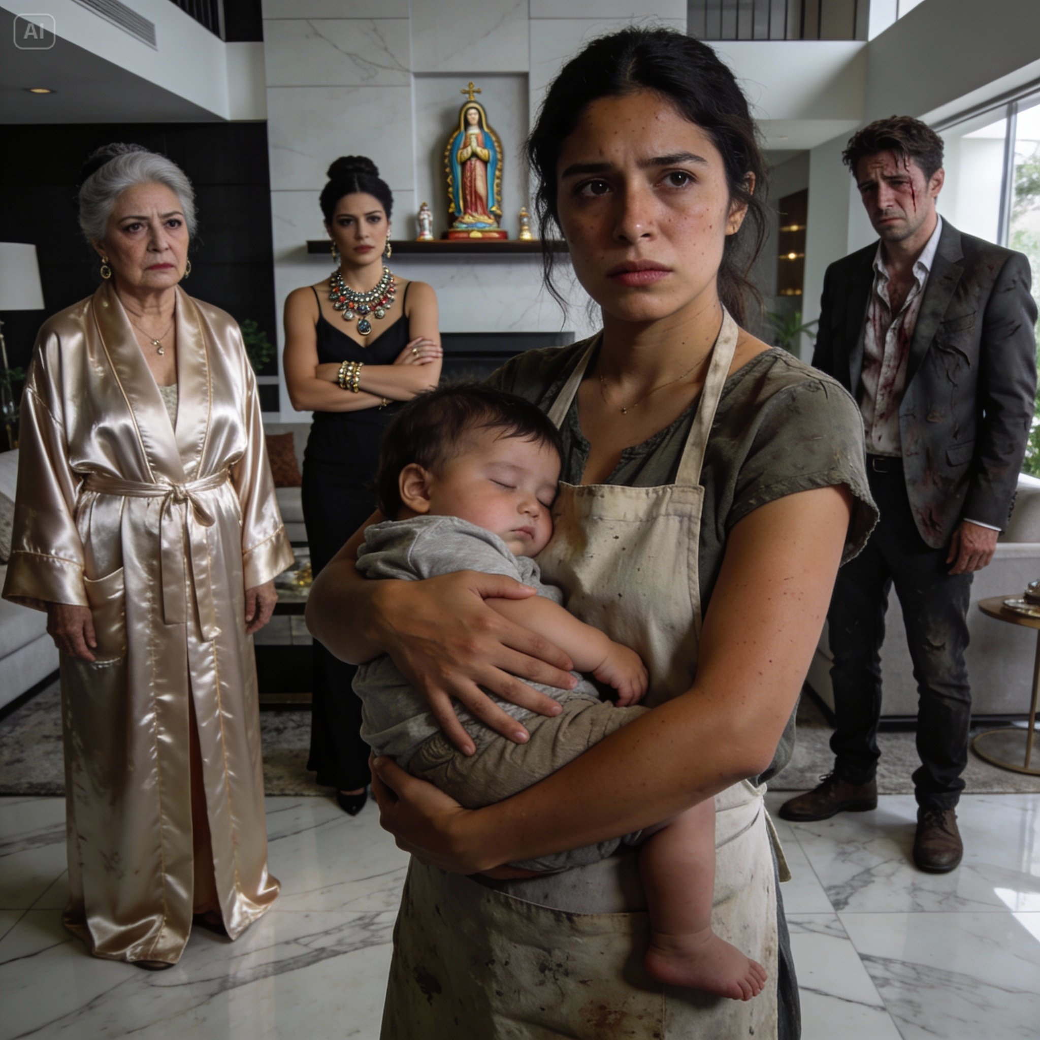 Doña Leonor, la abuela. Una mujer que no envejecía, solo se “refinaba”. Llevaba una bata de seda color champán que probablemente valía más que el enganche de mi casa. Su cabello estaba peinado en un chongo arquitectónico que ni un huracán movería. Me miraba como si yo fuera una cucaracha que acababa de salir de la coladera de su baño de visitas. Sus ojos no tenían calidez, solo cálculo. Para ella, yo no era una persona; era un error logístico, una falla en su sistema perfecto.