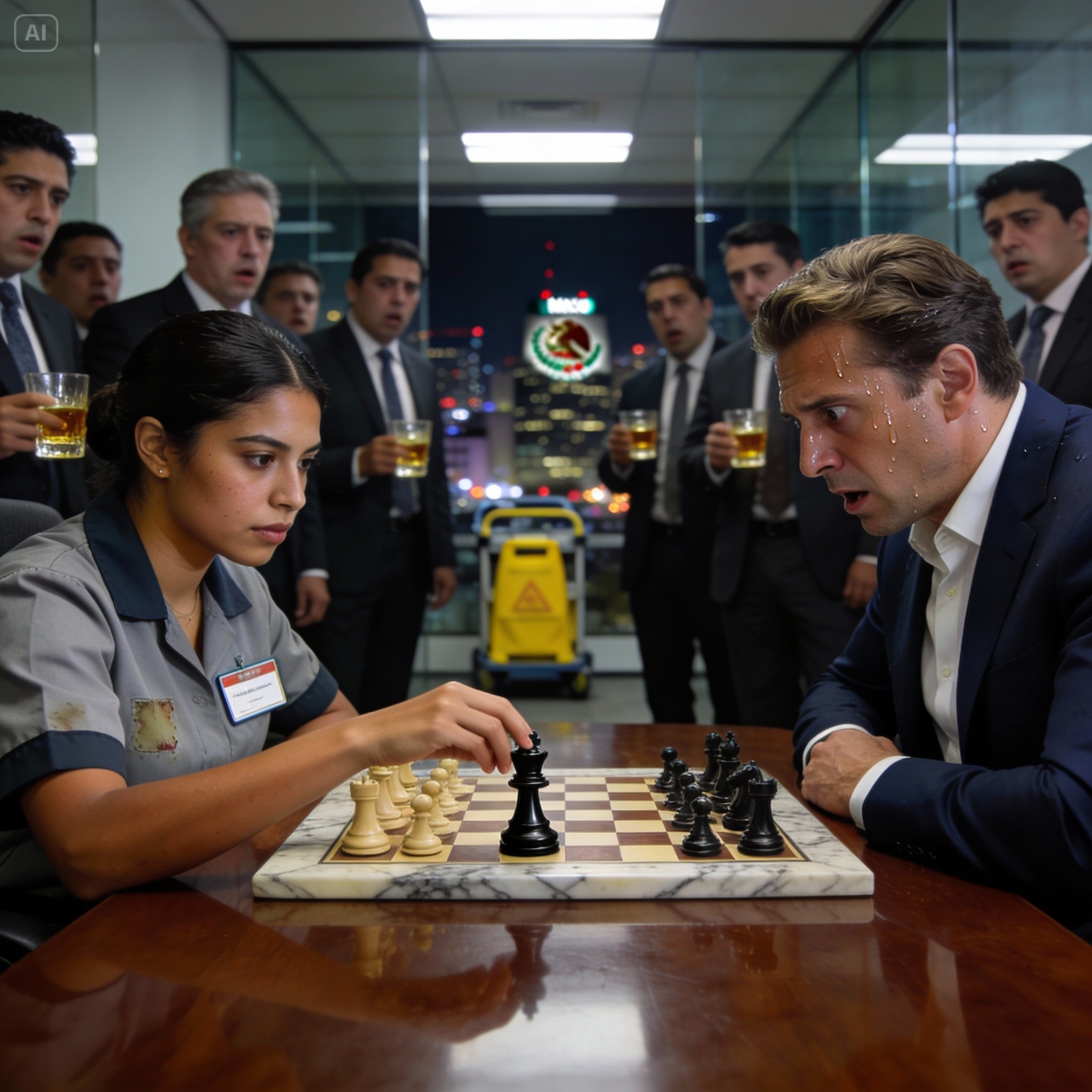 Consumido por la curiosidad y una extraña forma de respeto, Alejandro decidió esperar. Dejó el tablero de ajedrez en el salón ejecutivo, preparado deliberadamente, con las piezas blancas frente a él, esperando el momento en que el carrito de limpieza volviera a cruzar la puerta.
