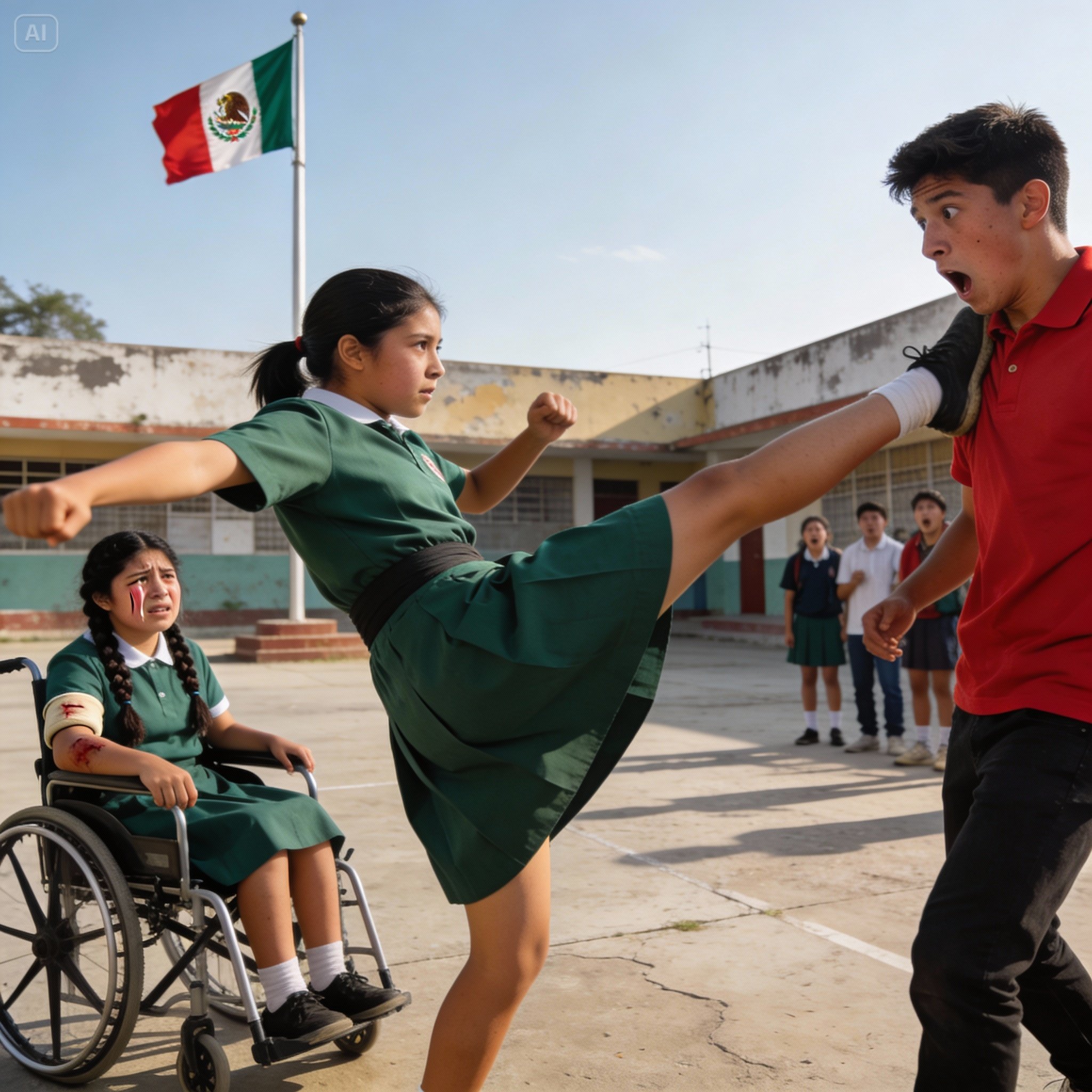 Camilo no siempre usaba palabras. A veces era solo el gesto de bloquearle el paso en el pasillo, obligándola a retroceder, o el sonido burlón que hacía con la boca imitando el chirrido de sus ruedas cuando ella pasaba por el salón de clases. Esa mañana, mientras el sol subía constante y brillante, Camilo se sentía particularmente poderoso. Estaba rodeado de sus “sombras”, Hugo y Miguel, dos chicos que habían intercambiado su personalidad por un poco de la popularidad de Camilo. Juntos, formaban una barrera de carne y hueso justo frente a la rampa de acceso, el único camino que Trinity podía tomar para llegar a su primera clase.