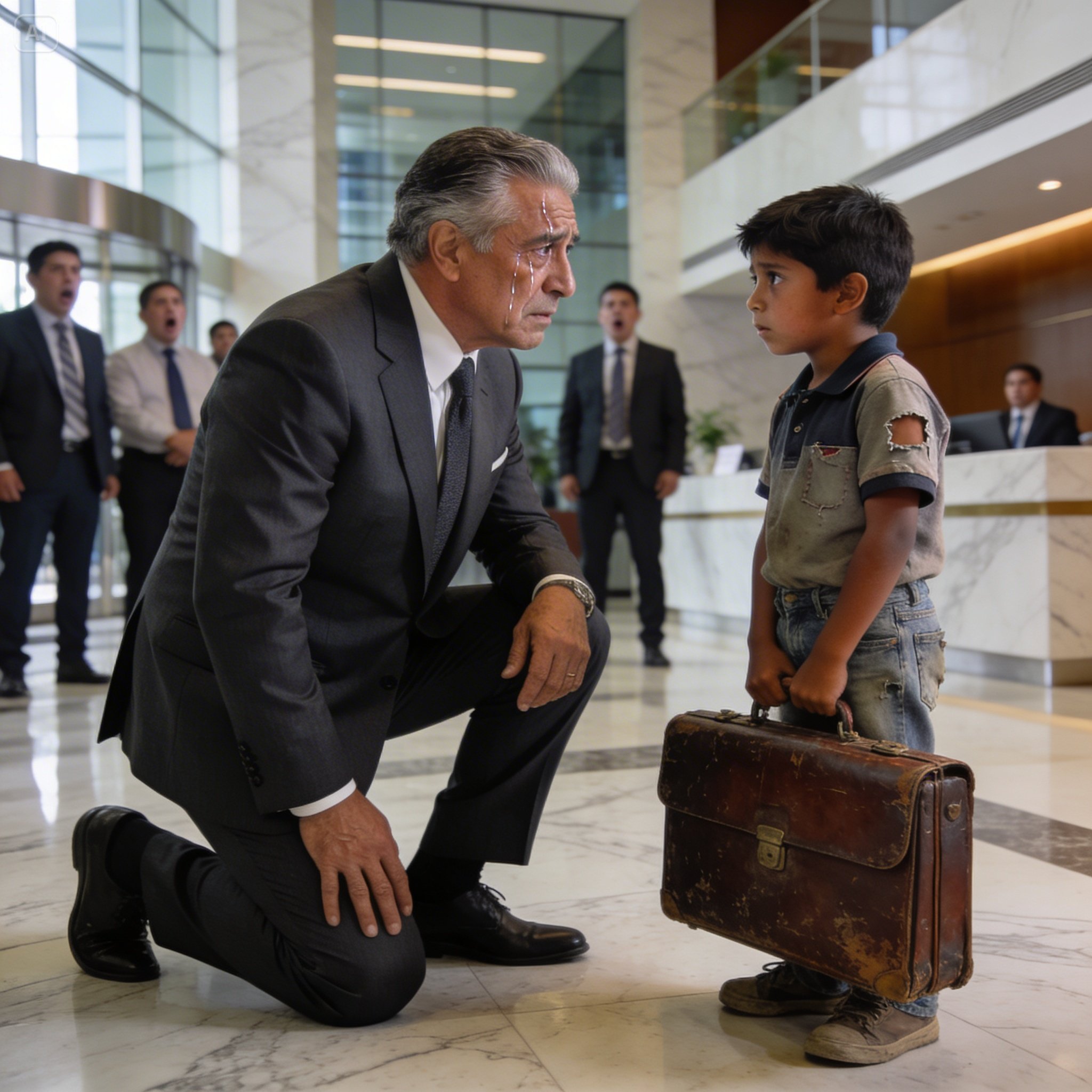 A nuestro alrededor, el inmenso lobby del corporativo se había convertido en un santuario silencioso. Ni los teléfonos se atrevían a sonar. Varios de mis directores de primera línea se habían acercado. Ver a su implacable jefe, al “Tiburón de Santa Fe”, el hombre que no le temblaba el pulso para despedir a quinientas personas de un plumazo, llorando desconsolado de rodillas frente a un niño pobre y un maletín roto, los tenía paralizados.